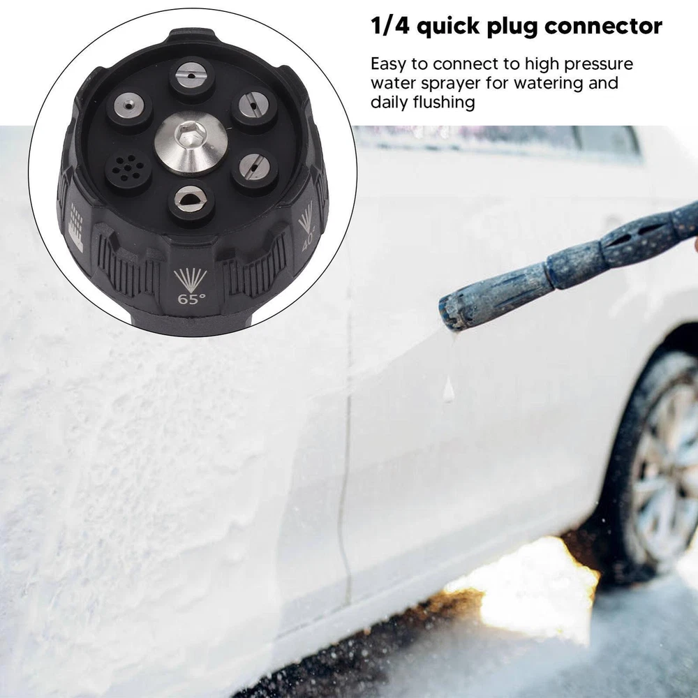 SAFE & SECURE SHOPPING 100% SATISFACTION GUARANTEED FAST SHIPPING Store Categories Store Categories You may also like 6 In 1 Spray Nozzle Pressure Washer Nozzle Tip Adjustable For Garden Cleaning Product Description Features: 1. This 6 in 1 nozzle offers 6 different quick changing modes including standard nozzles at shower, 0, 15, 25, 40, 65 degrees, nozzles and rinsing, rinsing is ideal for garden watering and removing unstable dirt in hard to areas. 2. High accuracy contraption, reduce weight and improve efficiency by using smaller, lighter aluminum head. 3. The inlet plug has a removable filter to protect its seals and valves from dust and sand, saving the cost of purchasing another nozzle filter. Brass filter body and stainless steel strainer, very durable and robust. 4. If you don't like carrying heavy duty water guns and hoses and changing time wasting nozzles at different angles, then this well designed nozzle will save you unparalleled time on routine pressure cleaning jobs. Specifications: Item Type: Pressure Washer Spray Nozzle Material: Stainless Steel Engineering Plastic Installation Type: 1/4 quick plug interface Six Kinds of Adjustable: 40 degree fan, 65 degree low pressure fan, 25 degree fan, shower like spray, 15 degree fan, 0 degree straight Package include: 1 x 6 in 1 Pressure Washer Spray Nozzle Shipping Returns Contact Us Payment Shipping 1. Items sent from US warehouse. 2.Receiving time = Processing time + Shipping time 3. Processing Time: Around 1-2 business Days 4. Shipping Time: 3-5 business day it may have a little delay during some holiday (such as Christmas),any problem ,please feel free to contact Returns 1. 30 days warranty from the purchased date. Please contact us via email before returning the defective item. 2.Our warranty does not extended to any product that are physically damaged or that are not under normal operating conditions as result of misuse or improper installation on the buyer/user's part. 3.Return items should include the original packaging and all accessories. buyers MUST contact us for the returning address. 4.In all cases, buyers pay shipping fees at their own cost to return products for exchange or refund. We will be responsible for the postage of replacements. Refund will be made upon receipt of the returned item. Contact Us Pls contact us if you have any problems,we will try our best to solve for you Payment We accept all verified payment from eBay. Copyright © 2022 Tongtool