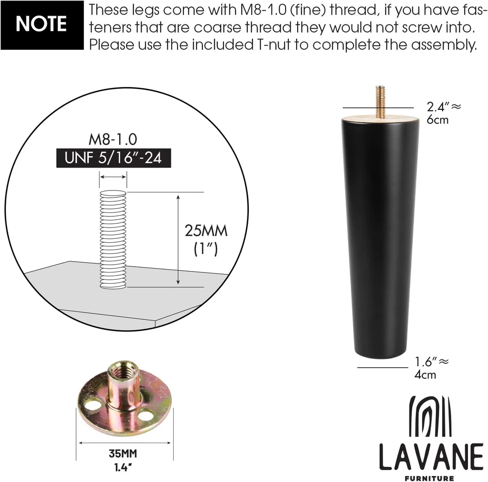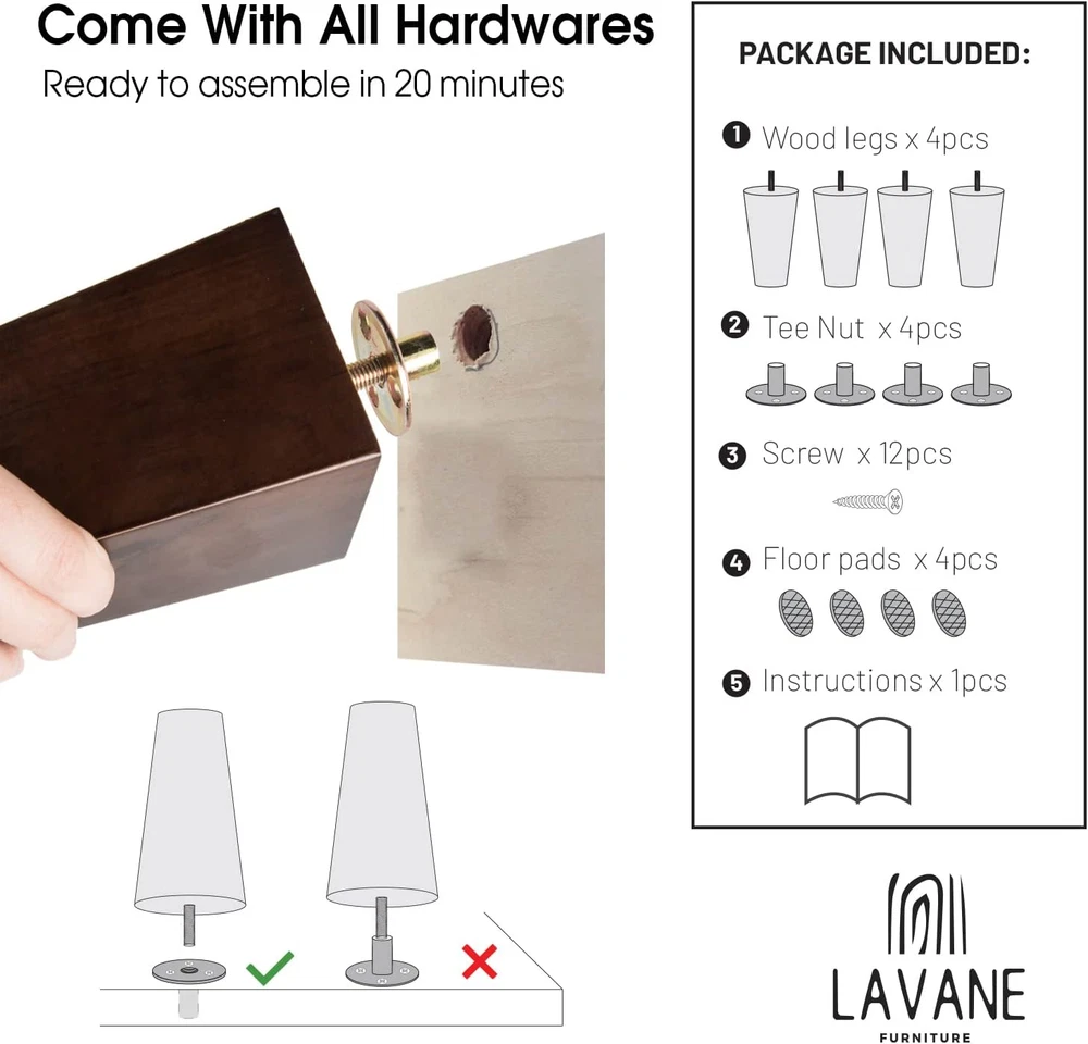 Store New Arrivals Add to Favorite View Feedback Contact 6 Inch / 15Cm Wooden Furniture Legs, Set of 4 Black Solid Wood Tapered M8 Furniture Feet with Pre-Drilled 5/16 Inch Bolt & Mounting Plate & Screws for Sofa Chair Couch Ottoman Description Item model number L:1207063-01-15/i26 Style Modern Color Tapered Furniture Finish Black Weight Limit 220 Kilograms Item Weight 940 Grams Installation Type Screw-In Size 6" / 15cm Material Wood Shape Cone Specific Uses For Product General Purpose Leg Style Tapered Number of Pieces 4 Product Dimensions 4.33 x 4.33 x 7.09 inches Product Care Instructions Wipe with Dry Cloth BE THE ENVY OF FRIENDS & FAMILY - Great way to get the Fashionable Mid-Century Modern look for your home while respecting your budget. Smoothly wood tapered legs deliver a clean and stylish upgrade to any of your household or office interior design projects. Eco Friendly and all natural these upgraded legs will have everyone wondering if you bought a whole new furniture set! EASY INSTALLATION & UNIVERSAL FIT - Bonus Mounting Plates + Screws + Pre-installed 5/16-inch US standard Hanger Bolts mean that you can mount these legs on any MADE IN US or Imported Furniture with ease! All of the high quality hardware you need is included with your order to ensure smooth installation. Please note that Italian furniture are usually drilled with M10 bolt, which means you might need more accessories to fit. SOLID RUBBER HARDWOOD WITH BLACK FINISHED - The furniture legs are expertly crafted and constructed with highest quality rubber wood with black finished to ensure sturdy and long service life. Coated with varnish to maintain its natural wood color. Always look fashion. FLOOR PROTECTION PADS - Comes with 4pcs of sturdy rubber floor protectors to ensure your hardwood floors stay in pristine condition without scratching. These furniture legs have thick pads which will stay in place for years! WIDELY APPLICATION - The set of 4 furniture legs work well on sectional, 3-seat sofa, couch, armchair, and also on bed, bench, end table, coffee table, wardrobe, night stand, cabinet, dresser, office furniture and etc. Ideal for your DIY project. Solid Hardwood Furniture Legs with Black Color Finished - Solid oka hardwood furniture legs with Black color finished set of 4 for DIY furniture projects, furniture restoration and furniture height raising projects. - You will have everything ready to get the job down. - Perfect for furniture sofa, table, chair, couch, chest of drawes, cabinets and more! Easy Installation - With this full set of wood furniture legs, all you need to do to get the job done is to pre-drill M8 screw holes, attach the leg mounting plates, and install furniture wood legs. - The STYLISH DESIGN and EXPERTLY CRAFTED FINISH will have people wondering if you bought a whole new furniture set. - EASY INSTALLATION and UNIVERSAL FIT mean that you will have the upgraded furniture ready for use in no time! Specification - Material: Oka Wood; - Upper Diameter: 5.8cm / 2.28inch; - Bottom Diameter: 3.8cm / 1.5inch; - Plate Size: 7*7*1.5cm / 2.76*2.76*0.6inch; - Screw Thread: 5/16” / M8 (8mm); Note - Due to the natural wood, it is normal that there is a little deviation of item size, pattern and color, thanks for your understanding; Package Included - 4x Wooden Furniture Legs - 4x Iron Plates - 1x Screw Set ABOUT US We offer the best prices around on high quality products. Our E-store includes media such as books, movies, music and games while offering electronics, toys, sporting apparel, clothing, tools, general home, garden items and more. SHIPPING We are always working hard to ensure your package arrives as soon as possible. Please understand that some factors like weather, high postal traffic, and the performance of shipping companies are outside of our control. We offer free shipping to the lower 48 states and ship within 2 business days of payment, usually sooner. We do not accept P.O. Boxes. Please provide a physical address. For shipping outside of the continental USA, we only use eBay's Global Shipping Program.The item is shipped to KY and then sent to the rest of the world. International customers are responsible for all duties and taxes. Continue to check out in order to calculate costs for shipping the item to your country. Messages regarding eBay's Global Shipping Program MUST be directed at eBay EXCLUSIVELY. RETURNS We offer a 30-Day Return Policy on items which you are not completely satisfied with. You have the option for a full-refund or an exchange of the item. No returns are available on items shipped outside of the USA. PAYMENT We accept PayPal. CONTACT US This page content is yet to come Please ad us to your favorite seller and visit again later Thank You CUSTOMER SATISFACTION We try our very best to make sure every customer is completely satisfied. If there's a problem, message us! We're happy to help. WE ACCEPT Copyright © 2021 AutoDS. | All Rights Reserved