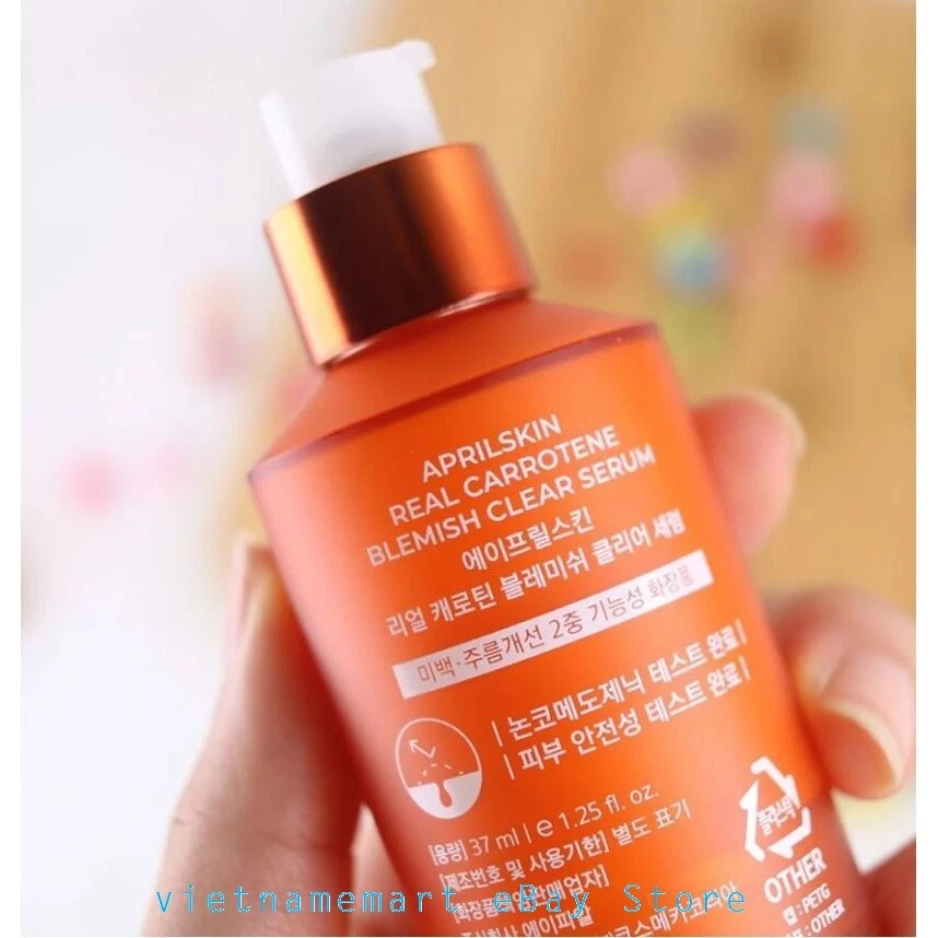 Free eBay listing template designed by vietnamemart Aprilskin Real Carotene Blemish Clear Serum 37ml Acne Cleansing Essence Brand : Aprilskin Origin: Korea of Republic Contains: Jar of 37ml (1.25 fl oz) Expiry : 2 years from manufacture date Condition : New Packing : 6 Jars Description: Made with 20,000ppm niacinamide and beta-carotene, Real Carrotene Blemish Clear Serum contains 10 times more carrot juice and carrot protein than version 1.0. Stops the acne cycle and speeds up skin cell regeneration. Helps soothe your irritated skin, while preventing breakouts from returning. Upgraded with dual function for a more powerful brightening and smoothing effect! With our patented "Sebum Cleaner Complex", it will also control the oil and moisture composition of your face! Using: 1. Use morning and night after cleansing and toner 2. Using 1-2 presses, gently apply the entire face from the center. 3. Apply 2-3 more layers on sensitive areas Skin care routine: 1. Carrot Acne Foam Cleanser: Deep cleansing face wash 2. Real Carrot Blemish Clear Serum: Clear blemishes and acne Contact us If you require any further information, feel free to contact us. We will respond to you within 24 hours and do our best to help you out! We encourage our customers to contact us with any questions or concerns! We'd like to be sure you are completely satisfied with your purchase. SHIPPING - We ship by VIETNAMESE POST OFFICE to WORLDWIDE - We endeavour to pack your orders carefully and ship your items within 0 3 business days (normally within 24 hours) after receiving your payment. We ship internationally on every day from Monday to Saturday to ensure prompt delivery. INTERNATIONAL SHIPPING - Most times you will receive your order within 10-25 working days after we transfer your package to the delivery company. Some countries like Russia, Brazil, Canada or some European countries may take an additional 2 weeks for arriving. - Please note that international shipping may incur customs fees, including import duties and taxes. These charges are the responsibility of buyer and are not included in our rates or shipping charges. When ordering from our website, you are considered an importer and must comply with all national laws and regulations upon receipt of the products. - Please check with your country's customs office to determine what these additional costs will be, prior to bidding or buying. PAYMENT - We only accept PayPal or buyers can pay credit card through PayPal. RETURN - Accept return or exchange within 60 DAYS ONLY if items have been unopened, unused, in original packaging and are resellable or if the item is determined not as described or defected or damaged during shipment. Buyer will be responsible for their own shipping fee to return the package back to us. FEEDBACK - Your satisfaction and feedback are very important to us. Please leave positive feedback if you are satisfied with your item and service. If you have any problems with your item or service, please contact us first before you leaving any feedback . We will do your best to solve problem with you . Thank you for your understanding. - Please contact us via eBay messages if you have any questions. You will get a response within 24 hours. Thank you for shopping with us!