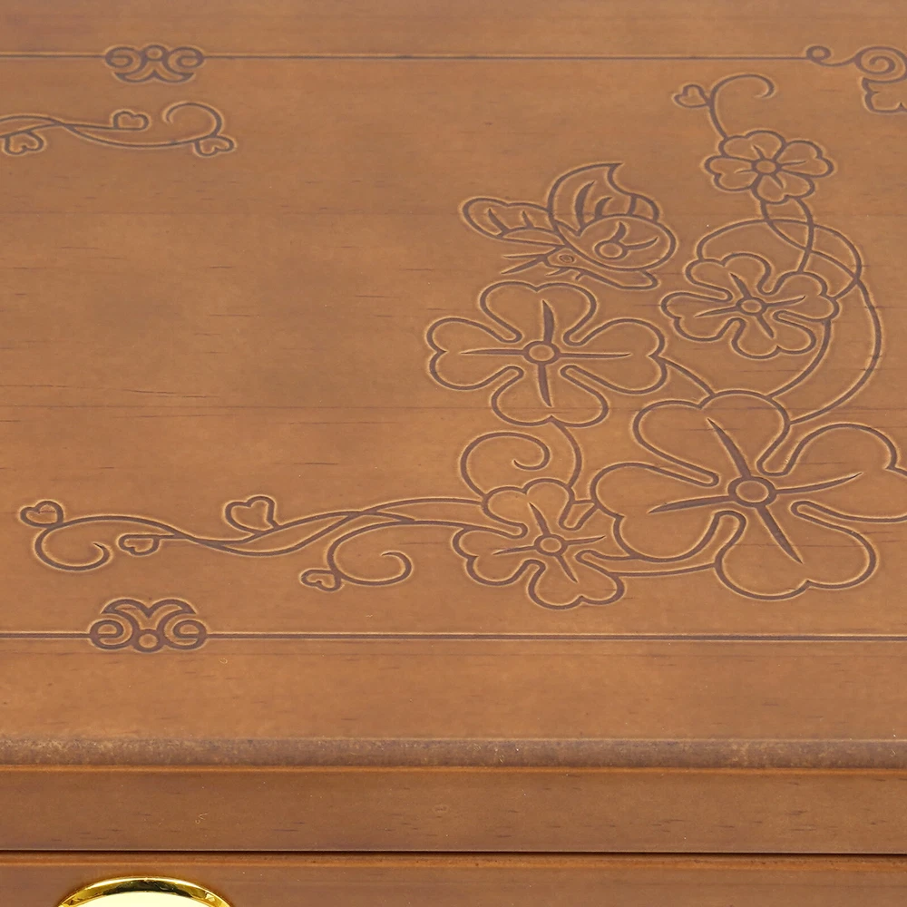 6 Layers Jewelry Box w/ Lock + Mirror Four-Leaf Carved Top Velvet Cabinet Case