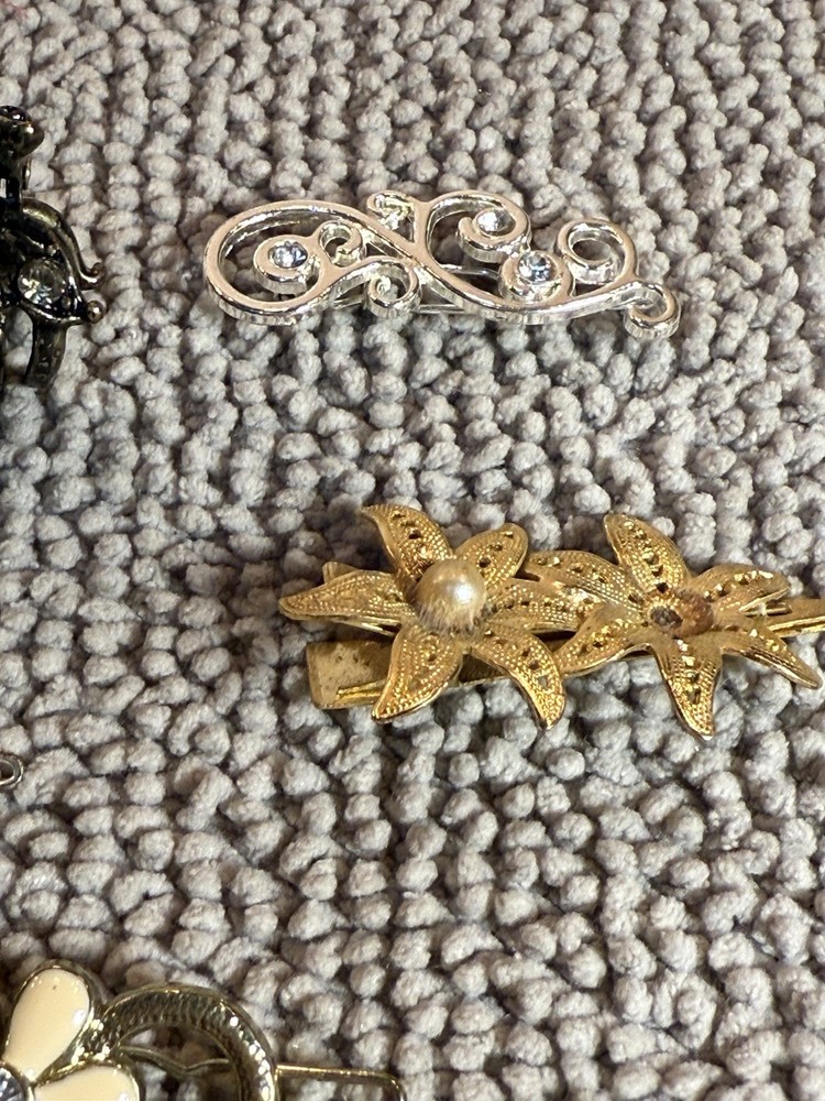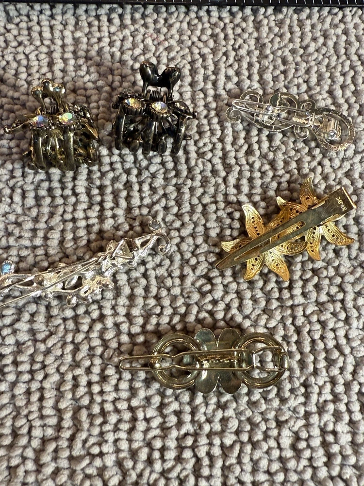 This lot of 6 multicolor metal fashion hair pins is a colorful and eco-friendly accessory suitable for various occasions such as weddings, parties, or casual wear. The mix of shapes and accents in the design adds a playful and happy character to any outfit. Made of durable metal, these hair pins are compatible with all hair types and are sure to add a stylish touch to your look. Ideal for women who appreciate sustainable fashion choices, these colorful hair pins are a fashionable and environmentally-conscious addition to your accessory collection. Mix lot