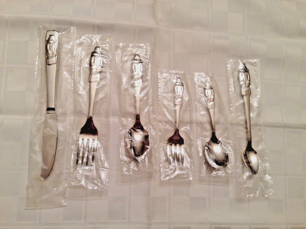 Vintage 6 piece Oneida Stainless Youth/ Infant/ Toddler Silverware/ Flatware Set. The Pattern: PADDINGTON BEAR. Includes:1 Youth Knife: 6 3/4" long, 1 Youth Fork: 5 3/4" long, 1 Youth Spoon: 5 14" long, 1 Infant Feeding Spoon: 5 1/2" long, 1 Toddler Fork: 4 5/16" long, 1 Toddler Spoon: 4 3/8" long. This Set is Brand New and still enclosed in the original cellophane packages. I do not ship outside of the USA. Thanks for looking. Payment is due within 3 days of auction close Please contact me with any questions I mail the day after I receive payment unless it is the weekend or a holiday. I ONLY MAIL IN THE UNITED STATES I ONLY ACCEPT PAYPAL - BE SURE YOUR ADDRESS IS CORRECT ****** ALL SALES ARE FINAL