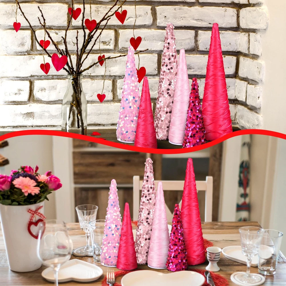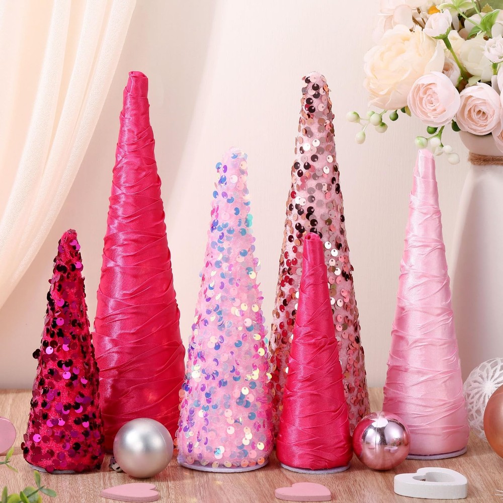 6 Pcs Pink Christmas Mini Cone Trees Tree Glitter Table Decoration Christmas Pink Ornaments Table Centerpiece for Xmas Tabletop Crafts Wedding Party Room Decoration Colorful and Festive Design: our pink Christmas glitter cone tree decoration embrace the atmosphere of the festivities, the vibrant, jovial colors encapsulate the essence of Christmas; Each Christmas tree centerpieces for tables shines and glitters, making it an eye catching centerpiece for your party Versatile Size Options: in order to suit various tabletop or party spaces, our glitter cone tree comes in 3 different sizes: large (9.84 x 2.95 inches), middle (7.87 x 2.36 inches), and small (5.91 x 1.97 inches); These sizes cater to different customer needs and preferences, allowing you to create the festive mood in any space you wish Holiday Package: the package includes 6 Christmas pink glitter cone trees, providing you with enough quantity to distribute all around your party space; You can use them to create enchanting Christmas stories on tabletop, make Christmas-themed scene in a large glass jar, or adorn wreaths to enhance festival atmosphere Atmosphere Enhancer: nothing sets the mood for holiday quite like our cone table tree decors; Their vibrant, colorful design is sure to get the attention of your guests, adding to the party atmosphere; Whether regarded as a centerpiece or scattered around a party, wedding, birthday, holiday gathering, our cone table trees are sure to enhance the joyous mood of your Christmas celebration Quality Material for Sturdy Display: our fake tabletop trees crafted with quality materials like foam, paper, iron, which can offer long lasting durability and stability, ensuring that they won't easily fade, deform, or break; Enjoy using them for many festive seasons Features: Experience the happiness of festival right at your dining table with our beautifully crafted festival tree set. The collection features 6 cone table trees in 3 varying sizes, ensuring your table decor is versatile and dynamic. The table trees come in vivacious, festival colors that will liven up any room. With these decorative tree ornaments, your decor will only be robust but also plentiful. The package includes 6 cone table trees, ensuring you can distribute them across your home, enhancing the festive atmosphere in more than one room. Specifications: Main material: foam, paper, iron Color: pink Size: Large: about 9.84 x 2.95 inches/ 25 x 7.5 cm Middle: about 7.87 x 2.36 inches/ 20 x 6 cm Small: about 5.91 x 1.97 inches/ 15 x 5 cm Package includes: 6 x Christmas glitter cone tree Notes: Manual measurement, please allow slight errors on size. The color may exist a slight difference due to different screen displays Shipping We offer FREE shipping on all orders! We ship within Three business days of payment, usually sooner. We use a selection of shipping services such as UPS, FedEx, USPS etc., unable to choose a carrier. We only ship to the lower 48 states, no APO/FPO addresses or PO Boxes allowed. Sellers generally can’t change the shipping address that you provided at checkout. Local pickups and combined shipping options are not provided at this time. International buyers - please note: Import duties, taxes, and charges aren't included in the item price or postage cost. These charges are the buyer's responsibility. Return You can return a product for up to 30 days from the date you bought it by using the seller's FREE RETURN LABEL only. Any product you return must be in the same condition you received it and in the original packaging. International buyers - Rejection and return of the product requires the buyer to pay all shipping and return costs. Please return with the reason "Order mistake" or "Changed my mind" or "Does not fit" for a refund, which would be greatly appreciated. If the buyer wishes to return the items for a refund or replacement, please contact the seller to obtain a free return label. The refund or replacement will be processed using the tracking number of the return label, which will be provided solely by the seller. Other methods of return that have not been approved by the seller will not be processed for a refund or replacement. Payment We accept payment by any of the following methods: eBay Manage Payment Please pay as soon as possible after winning an auction, as that will allow us to post your item to you sooner! Feedback Customer satisfaction is very important to us. If you have any problem with your order, please contact us and we will do our best to make you satisfied. Please be aware that our products are stored and fulfilled by third-party warehouses and manufacturers across the United States (also known as third-party fulfillment or product sourcing). These companies are completely trustworthy, and we are confident in entrusting all of our valuable items to them for the safety and best delivery system for our store. Contact Us If you have any queries, please contact us via ebay. We usually respond within 24 hours on weekdays. Please visit our eBay store to check out other items for sale! Thank you for shopping at our store.