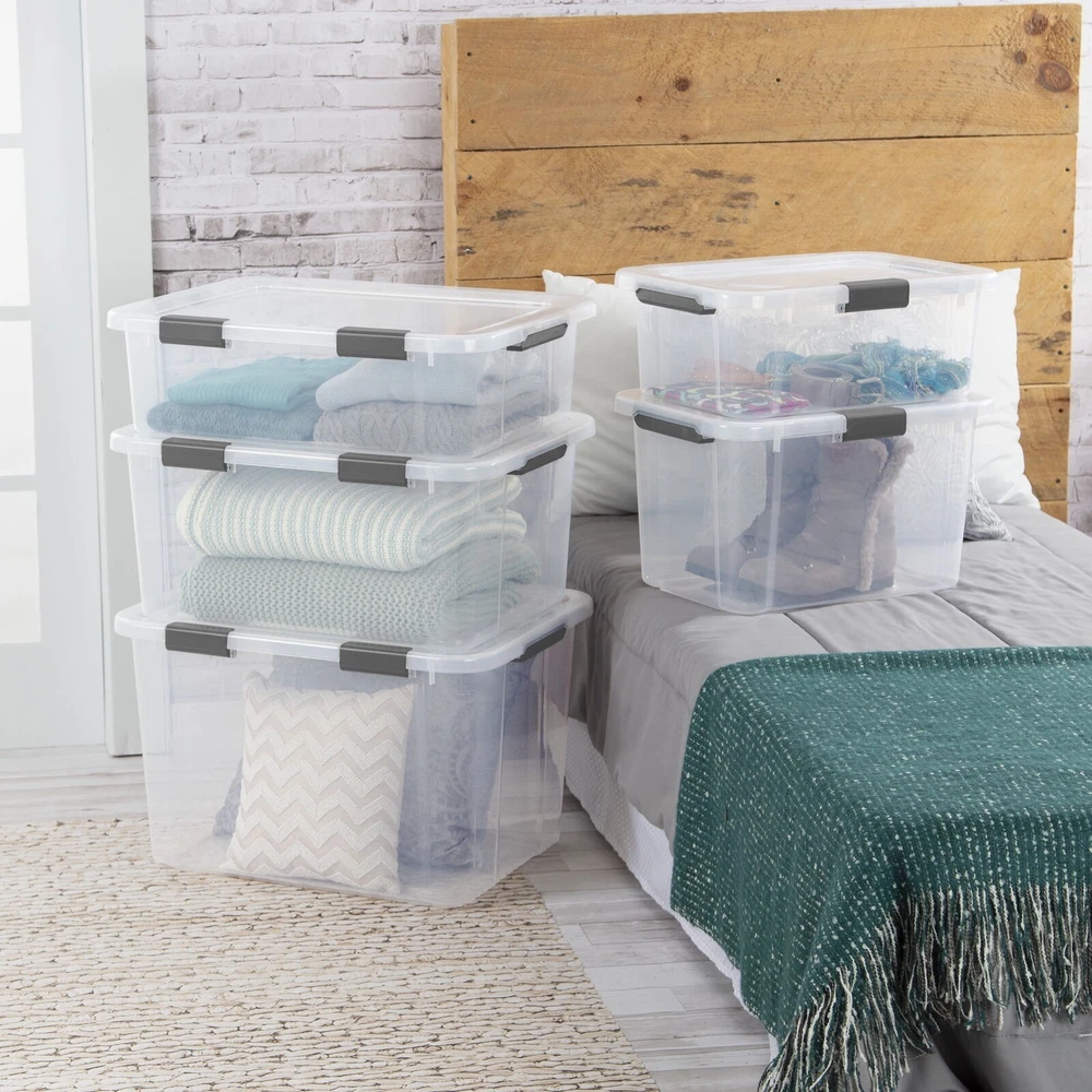 You may also like Multifunctional Fabric Storage Boxes W/ Drawers Home Organization Solutions New 70.34 USD Free shipping Stackable Storage Totes W/ Secure Lids BPA-Free Plastic Containers 4 Pack New 160.54 USD 168.99 USD Free shipping 5% off Modular Storage Trays 3-Pack Clear Drawer Organizer Kitchen Office Bathroom New 43.57 USD 45.86 USD Free shipping 5% off Heavy Duty Waterproof Storage Bin W/ Side Handles & Security Tie-Downs New 48.28 USD 65.17 USD Free shipping 26% off 3-Pack Christmas Wreath Storage Container Box 33 Quart Stackable Organizer Bin 61.74 USD 64.99 USD Free shipping 5% off Durable Stackable Storage Totes Perfect RV Garage Camping Fishing Supplies New 112.18 USD 118.08 USD Free shipping 5% off 40 Gal Wheeled Industrial Storage Tote Set of 2 Durable Heavy Duty Bin Durable 60.6 USD 63.79 USD Free shipping 5% off Multi-functional Fabric Storage Boxes W/ Large Capacity Durable MDF Drawers New 59.26 USD 62.38 USD Free shipping 5% off 6 Piece Kitchen Drawer Organization Storage System Stackable Bins Modular Design 66.88 USD 70.4 USD Free shipping 5% off 3 Drawer Wide Chest Storage Plastic Organizational Drawers Home Office Classroom 75.95 USD 79.95 USD Free shipping 5% off EZ Carry Storage Bin W/ Lid Stackable Portable Containers W/ Full Grip Handles 36.42 USD 38.34 USD Free shipping 5% off 64-Drawer Heavy Duty Plastic Storage Cabinet Garage Classroom Home Organization 54.33 USD 57.19 USD Free shipping 5% off Great organization “hinges” on the ideal solution for your storage challenge!… And here is a brand new Clear Storage option! The HingeLID Storage Box line combines popular features such as a hinged lid for easy access, clear lid and base for quick identification of contents, and a stylish textured pattern for a décor touch! The innovative hinged lid stays open unassisted, allowing you to use both hands, for careful handling of stored items. The lid stays attached, so no worry of it getting misplaced! For easy clean up, snap the color-accented latches to secure the lid to the base and transport the Storage Box with ease using the textured, comfort-grip handles. The 40 Quart HingeLID Storage Box is ideal for sorting and storing items such as linens, towels, clothing and more. Once your items are stored, the clear lid and base allows for easy viewing and retrieval of your belongings. The 40 Qt, 60 Qt and 80 Qt HingeLID Storage Boxes use the same lid, allowing shallow and deep sizes to be stacked on the same footprint. The indexed lids allow for secure stacking and efficient use of that vertical storage space. The HingeLID Storage Box line is available in five sizes, ranging from 20 Qt to 80 Qt, and designed with a modern profile and textured pattern. Pick up the sizes that are best for you and dress up your storage today! The overall assembled dimensions of this item are 24" L x 19 1/4" W x 7 3/8" H. Sterilite Adult Plastic 40 Qt. HingeLID Storage Box Plastic, Flat Gray, Set of 6: Outside Dimensions: 24" x 19 1/4" x 7 3/8" Set of 6 Flat Gray Interior Dimensions at bottom: 20 7/8" x 15 3/8" x 7" Versatile, all-purpose solution, ideal for a variety of household storage needs Hinged lid allows for easy access to contents and ensures that the cover is never misplaced Clear lid an d base allow for contents to be viewed at a glance and easy to find Sturdy, color-accented latches secure lid to base, keeping contents safely stored inside Modern, decorative and textured pattern featured throughout the item – on the lid, latch and handles Comfortable handles make lifting and transporting easy BPA-free and phthalate-free You may also like 4-Tier Kitchen Rolling Cart W/ Wheels Multi-Purpose Storage Organizer Home New 56.8 USD 59.79 USD Free shipping 5% off Shoe Bench Storage Organizer W/ 6 Compartments & 3 Adjustable Shelves Entryway 69.13 USD 72.77 USD Free shipping 5% off Airtight Food Storage Containers Set of 2 Flour Sugar Rice Baking Supplies New 37.04 USD 38.99 USD Free shipping 5% off 12x42 HD Binoculars High Powered W/ Phone Adapter Bird Watching Travel Adults 64.82 USD Free shipping Electric Car Jack 3 Ton Auto Lift 12V Safety Stop Heavy Duty Steel High Capacity 67.92 USD 71.49 USD Free shipping 5% off Height Adjustable Ironing Board W/ Safety Rest 4 Layer Cover Sturdy Steel Legs 86.44 USD 90.99 USD Free shipping 5% off 2Pack Self-Watering Tomato Planter Boxes W/ Adjustable Trellis Climbing Plants 37.04 USD 38.99 USD Free shipping 5% off Pressure Washer Gun Wand 360 Degree Swivel M22 Coupler Stainless Steel 4000 PSI 74.09 USD 77.99 USD Free shipping 5% off Heavy Duty Garage Hooks 24 Pack Wall Mount Hanger Organizer Tool Bike Storage US 53.1 USD 55.89 USD Free shipping 5% off 6 Tier Geometric Bookcase Book Shelves Storage Shelf Display Shelf Living Room 135.84 USD 142.99 USD Free shipping 5% off 700W Power Elite Wave Action Blender New 12 Functions Smoothies Shakes Ice Crush 58.24 USD 61.31 USD Free shipping 5% off Tall Nightstand W/ Charging Station 4 Tier Storage Bedside Table USB AC Ports 61.74 USD 64.99 USD Free shipping 5% off