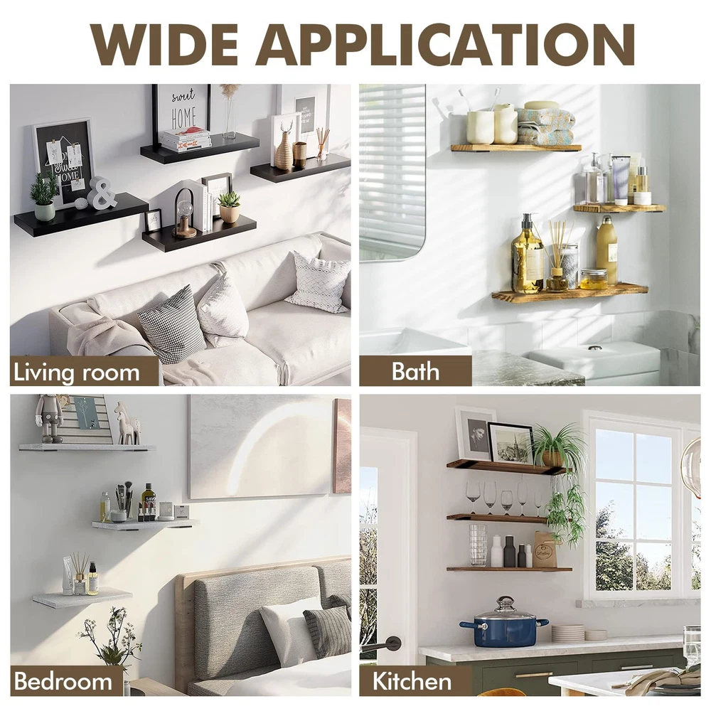 Home6 Pack 6-Inch Heavy Duty Floating Shelf Brackets, 1/5-Inch Thick Metal Supports