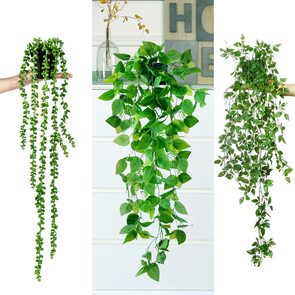 These fake hanging plants are a game-changer! They look so real—lush, vibrant, and perfectly detailed—that guests might mistake them for the real thing. No watering, no sunlight needed, just instant greenery to freshen up any room. The different lengths add great dimension, and the plastic material holds up well. Perfect for shelves, bathrooms, or above windows where real plants struggle. Zero maintenance, all the beauty—absolutely worth it!
