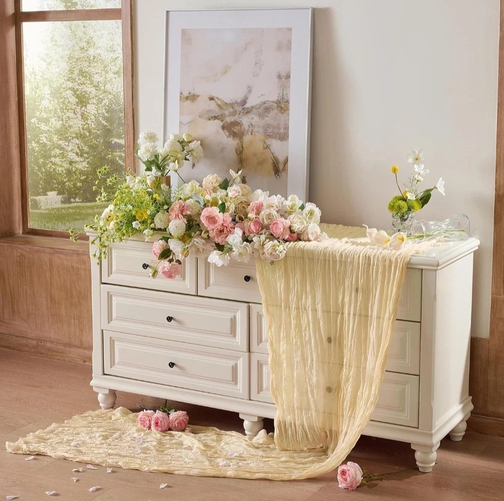 6 Pack Cheesecloth Table Runner 120 Inch Boho Rustic Gauze 10 FT Beige Cheese Cloths Table Runners Decorations for Spring Summer Birthday Party Baby Shower Wedding Holiday Home Decor #12.10.26