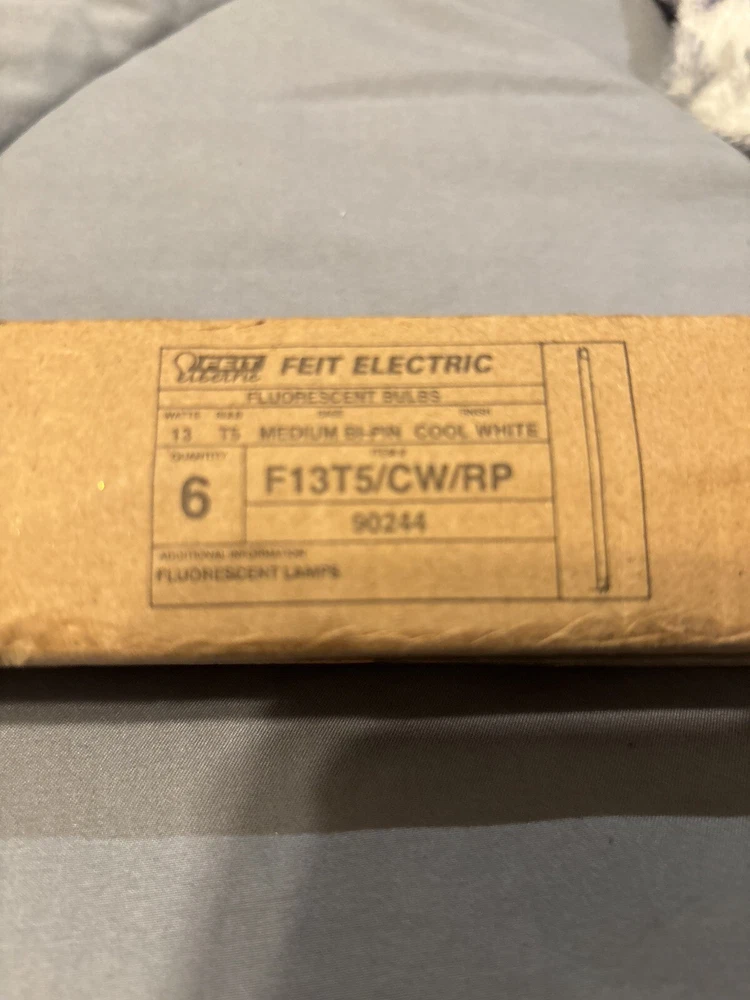 The Feit Electric F13T5/CW/RP is a 13W fluorescent linear tube bulb with a T5 bulb shape, producing 4100K color temperature and 800 lumens of light output. It features a frosted finish and measures 0.620 inches in length, 2.30 inches in width, and 21.8 inches in height. With a voltage rating of 120V, this bulb is designed for use in various lighting applications, providing energy-efficient illumination. The manufacturer, Feit Electric Co, ensures quality and reliability in this product.