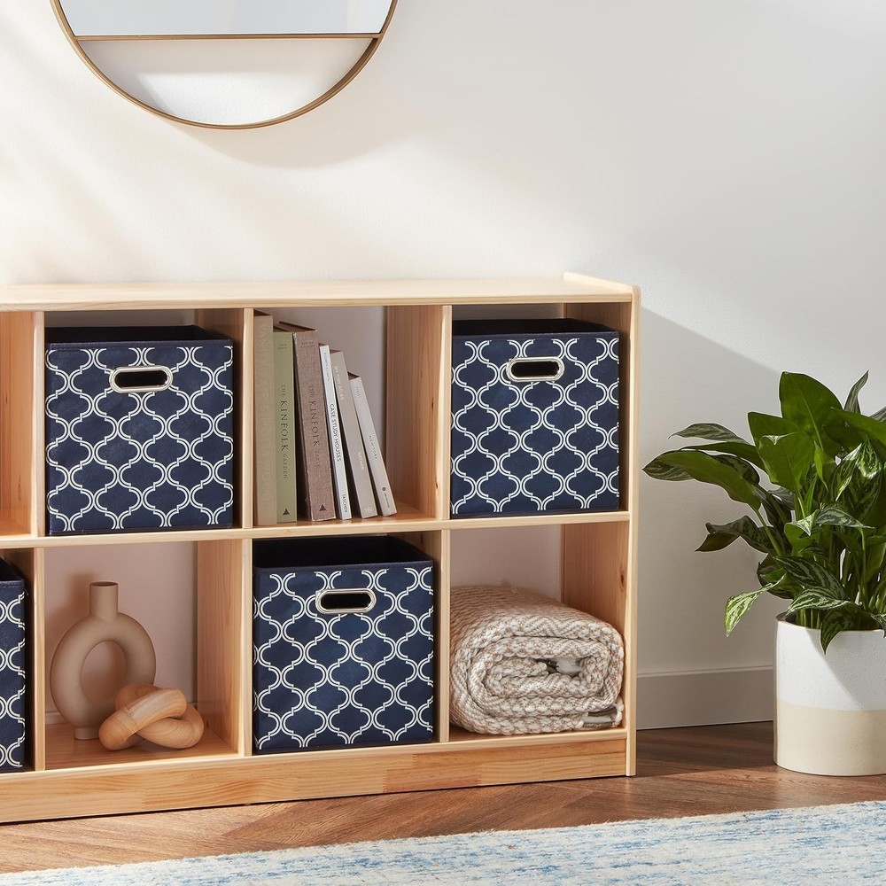 Style: Modern Shape: Square EAN: 020753186943 gtin13: 020753186943 Mounting: Free Standing Country of Origin: China Pattern: Trellis Number of Compartments: 1 Material: Fabric Item Depth: 11 in Item Width: 27.9cm Features: Durable, Foldable Type: Cube Storage Item Weight: 2.78 kg Size: Medium Number in Pack: 6 Number of Items in Set: 6 Colour: Trellis Item Length: 26.7cm Brand: AmazonBasics Finish: Painted Item Height: 26.7cm