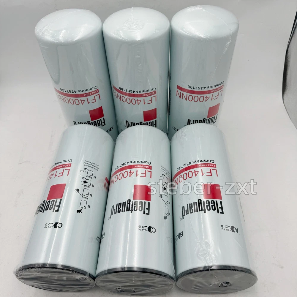 6 Pack Fleetguard LF14000NN Oil Filter Cummins ISX 4367100 Genuine Free Shipping Packaging: 1Box(6pcs) AS PICTURES SHOWN ATTENTION!! If you're not sure about the part number you need To better assist you in finding the correct part please provide 1. YEAR 2. MAKE 3. MODEL 4. ENGINE SERIAL NUMBER Note: If you have any installation or product issues, please contact us immediately and we will help you resolve them. If you are dissatisfied with the product, please select “Don't like” when returning it, and we will prioritize your request. Thank you for your cooperation! On Sep 14, 2025 at 12:25:35 PDT, seller added the following information: On Jan 7, 2026 at 09:36:00 PST, seller added the following information: