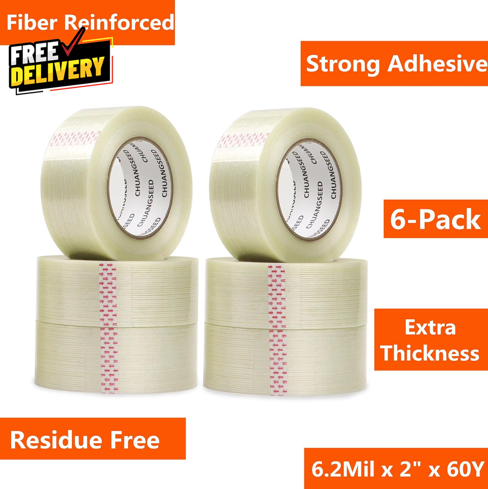 6PACK Reinforced Packing Tape, 5.5Mil 2Inx 60Yds, Heavy Duty Fiber Strapping Ad