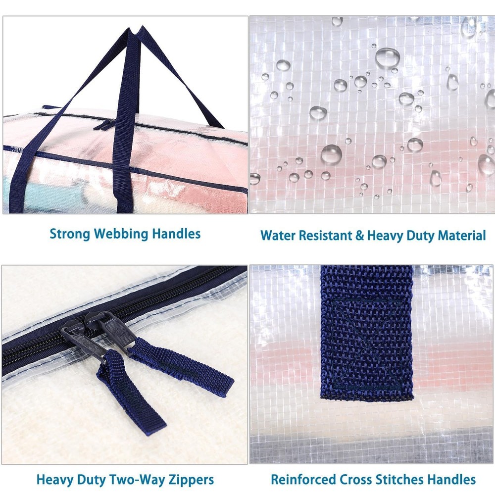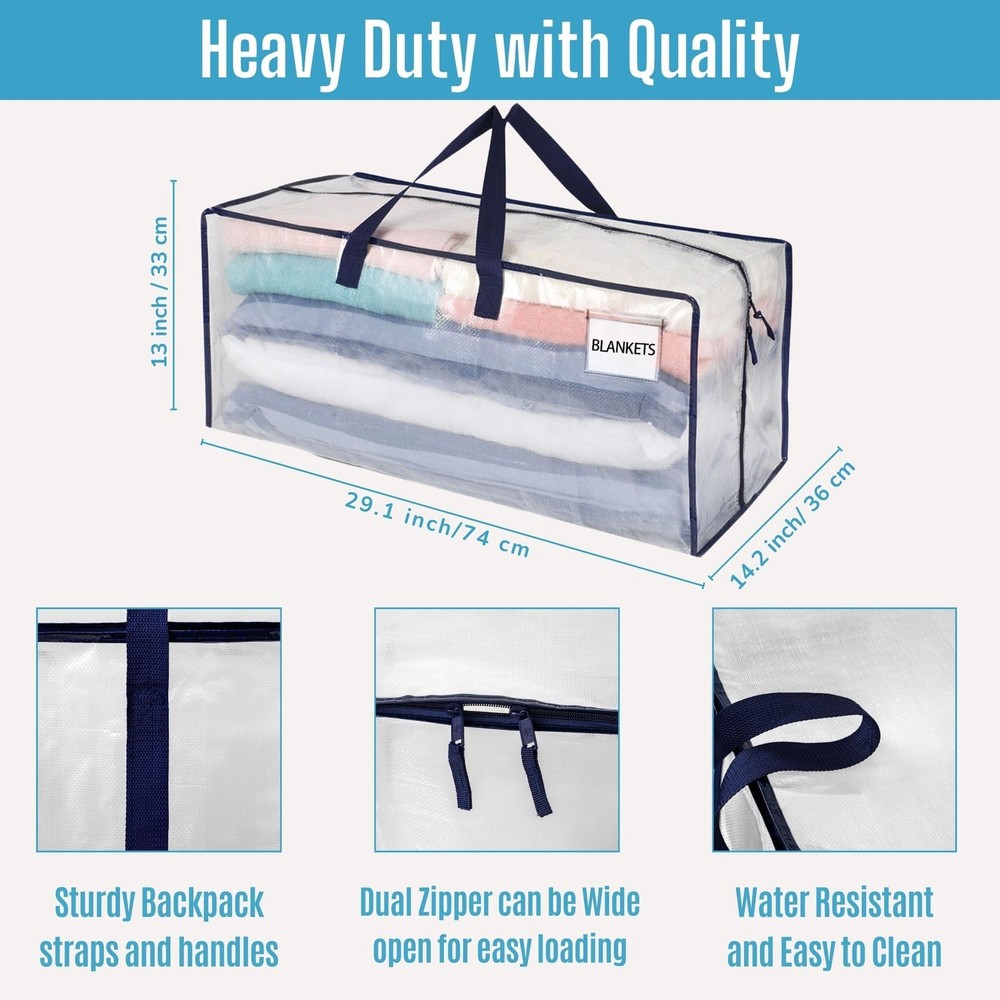 VENO 6 Pack Moving Bags w/Backpack Straps, Heavy Duty, Moving Boxes Alternative, Packing Supplies, Large Storage Totes for Dorm Room Essentials with Zipper for Clothes (Clear, 6 Pack) Hassle-Free Move without Boxes – No need to buy or assemble packing boxes or look for moving supplies. Streamline your move with VENO strong and spacious heavy duty moving bags that make a lightweight, convenient, and economical alternative to moving boxes. Just unfold, unzip, and begin loading to move your essentials into your college dorm room or new home! Use a wipe or damp cloth to clean & followed by air-drying. Collapse and fold flat to store in your drawers, cabinets, or shelves. Dual Carrying Options w/ Backpack Straps & Handles - Carry heavy loads effortlessly with VENO's versatile storage & moving bags. Designed with robust poly webbing straps, our packing bags can be worn like a backpack or carried using the strong handles. Capable of holding up to 50 pounds and offering 23 gallons of space, VENO bags ensure durability and water-resistance with PP-woven material.VENO bags are sustainable and reusable, designed for convenience and durability. 29.1"L x 14.2"W x 13"H. No Need to Remove Clothes Hangers – Skip the hassle of detaching hangers from clothes during moves. Fits hangers up to 16.5", allowing you to place clothes inside with hanger handles peeking out at the top, zip up, and easily hang them again in your new closet. A superior alternative to wardrobe boxes with bars, these bags offer a lightweight design and easy transport for a seamless moving experience, while shielding your hanging clothes from dust and moisture to keep garments safe and clean. Clear Tag Pocket & Wide Opening – Say goodbye to the frustration of searching for your belongings. Make a custom label and insert it into the clear tag pocket for easy identification of items like blankets, bedding, pillows, and clothes. Remember to use this labeling feature for organizing college dorm room essentials, moving to a new home, or storing items in the garage. The bag is equipped with dual extended zippers, creating a wide opening that allows for effortless access to stored items. Multifunctional - These bags excel in transporting camping essentials, featuring a large capacity suitable for sleeping bags, camping accessories, and dry food. Their water-resistant material safeguards belongings against moisture outdoors. The bag's heavy-duty material is designed to withstand wildlife chewing and tearing, offering added protection for your belongings. Additionally, they're ideal for compact spaces like college dorms and RVs, keeping items organized and tidy when not in use. VENO Extra Large Heavy Duty Reusable Storage Moving Bags are incredibly durable and versatile. With durable poly webbing handles, they are perfect alternatives to moving boxes. These bags are ideal for storing linens, pillows, blankets, clothes (with hangers still attached), books, shoes, and holiday decor. They feature a full-length zipper for easy loading and unloading and offer multiple carry options, including backpack straps and bottom straps for ultimate flexibility. Use them as an alternative to Ikea bags with zippers or traditional moving supplies, making them perfect packing bags for moving. These heavy-duty moving bags can hold up to 50 pounds, fitting medium and large moving box needs. They are ideal for college students, families in apartments, and anyone looking for efficient storage and moving solutions. Choose VENO to streamline your move and protect the environment. SHIPPING Domestic Buyers - We have confidence in our products, but if you are not fully satisfied please contact us within 30 days of purchase and you will get full refund. - We ship within 3 business days of payment, usually sooner - We offer FREE shipping on all orders! - We only ship to the lower 48 states, no APO/FPO addresses or PO Boxes allowed International buyers – please note: Import duties, taxes, and charges aren't included in the item price or postage cost. These charges are the buyer's responsibility. - Please check with your country's customs office to determine what these additional costs will be prior to bidding or buying. * Order Cancellation Policy ** You can return a product for up to 30 days from the date you purchased it. 1. The seller reserves the right to cancel the special case only due to eBay cancellation fee. 2. The decision of seller is the final. 3. The seller will respond to the cancellation request within 2 business days. Please wait for the result of cancellation. 4. In case the cancellation is not completed by some reasons, the buyer can follow the options below to get the refund. 4.1 The buyer can reject the item when it arrives. 4.2 The buyer can send the item back to the seller within 30 days If the buyer receives item (USA Shipment ONLY). The seller will provide the FREE return label to the buyer when the buyer opens " Return Item" case on eBay by using the reason as "Change my mind" ONLY. 5. When buyer has placed the order. The order will be processed and completed by automatic warehouse system within 5 minutes. In case that buyer sends the cancellation request after 5 minutes of placing the order, the request will be rejected. **Sending direct message to cancel the order is not allowed for every case.* Return Policy For the return case - If buyer would like to return the items for refund or replacement, please CONTACT SELLER to receive the free return label from seller. The refund or replacement will be processed with the tracking number of return label which is provided by seller only. The other ways of return which are not approved by seller will not be processed for the refund or replacement.