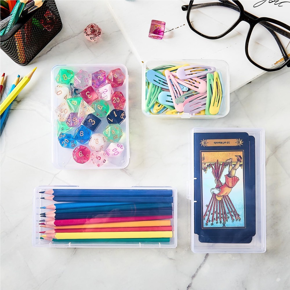 6 Pack Small Plastic Storage Containers with Hinged Lids, Rectangle Clear Package and Size: The package includes 6pcs 6.1 x 2.36 x 1.1 inch plastic containers with hinged lids, perfect for a workbench for all the small odds and ends you need to have on hand, keep your desktop clean and tidy Sturdy & Durable: Our plastic storage containers with hinged lid made of high-quality polypropylene plastic material, sturdy and durable to keep your items secured Smooth & Transparent: The clear and smooth appearance of our craft storage containers makes them look clean and tidy. The things inside are clearly visible to identify what you stored and you can quickly find what you need Tightly Locked & Stackable: These plastic containers open easily and close securely, no worry about them opening or spilling everything around in your bags. Our small plastic boxes are stackable, can save more space Storage Assistant: These rectangular clear plastic storage containers are not only suitable for beads, hair accessories, dried flowers, charms, glitters and other craft items, but also suitable for cards, pens and other larger items. Use your imagination to explore the various usage of these storage boxes Feature: High Quality Material Our small plastic box use polypropylene material and non-fragile plastic, which is firm and sturdy. The smooth and seamlessly edges not only prevent cuts to your hands but also prevent leaks, so you can safely slip them into your bag and enjoy your trip. Good Assistant for Organize The transparent exterior makes the contents clearly visible so you can find what you want quickly, reducing the unnecessary hassle of repeated searches. In addition, these boxes can be stacked without occupying space, great for organized people and for those who are trying to be organized. Suitable for Various Small Items Do you often worry about messy jewelry, lipstick, cards, beads and other small objects? Now you can keep them in good order and keep them clean without dust by using our light box. Whether in your office, kitchen, workroom, or desk, you can always find a place to use it. Use your imagination for all the possible uses, all the objects you might store in these. Specifications: Material: polypropylene plastic Color: clear Size: 6.1 x 2.36 x 1.1 Inch Quantity: 6pcs Package includes: 6pcs x small plastic containers Shipping We offer FREE shipping on all orders! We ship within Three business days of payment, usually sooner. We use a selection of shipping services such as UPS, FedEx, USPS etc. We only ship to the lower 48 states, no APO/FPO addresses or PO Boxes allowed. Local pickups and combined shipping options are not provided at this time. Return You can return a product for up to 30 days from the date you purchased it. Any product you return must be in the same condition you received it and in the original packaging. Please keep the receipt. Payment We accept payment by any of the following methods: PayPal Please pay as soon as possible after winning an auction, as that will allow us to post your item to you sooner! Feedback Customer satisfaction is very important to us. If you have any problem with your order, please contact us and we will do our best to make you satisfied. Contact Us If you have any queries, please contact us via ebay. We usually respond within 24 hours on weekdays. Please visit our eBay store to check out other items for sale! Thank you for shopping at our store.