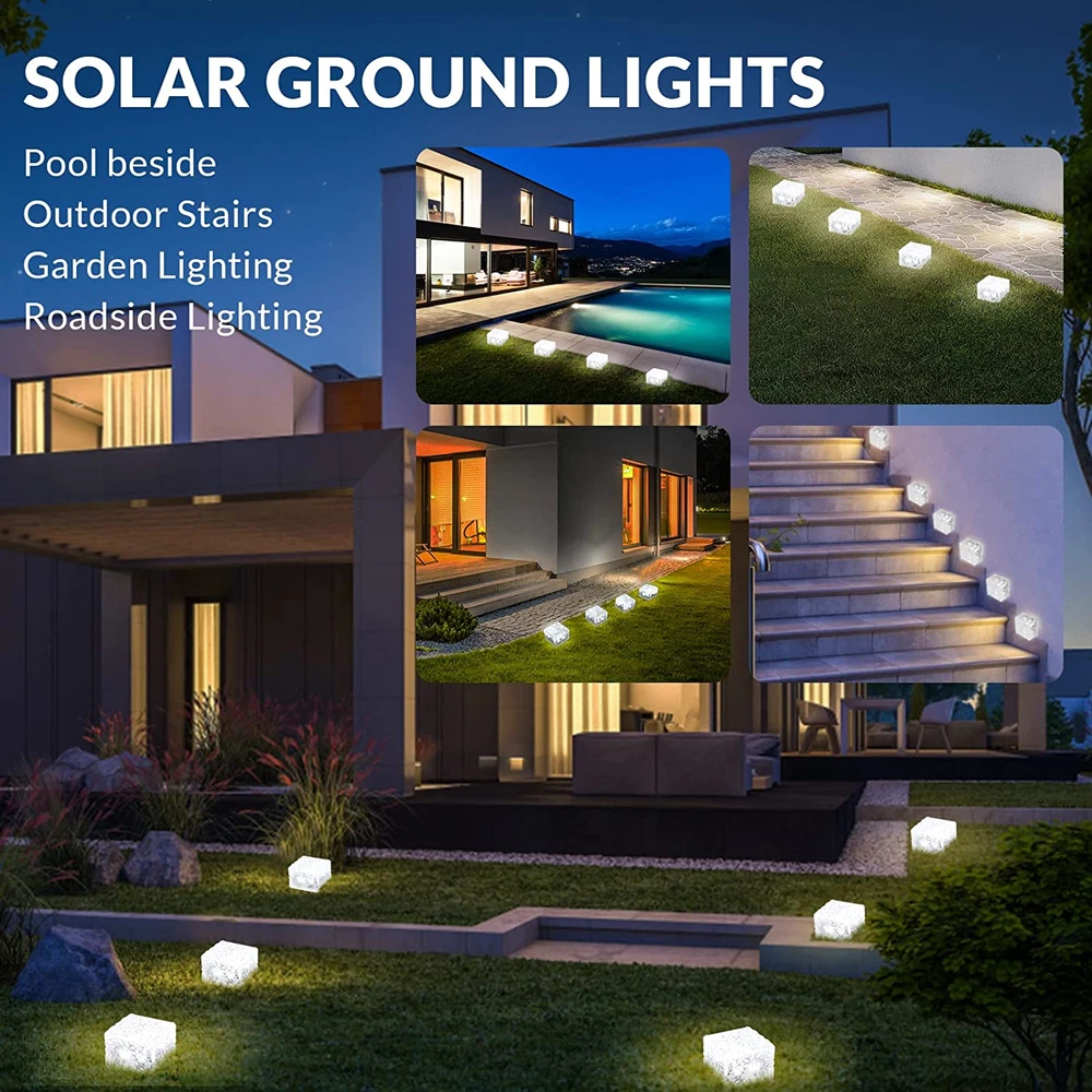 [Included content] You can get 6 solar brick lights, you can put it anywhere, it will absorb solar energy during the day and automatically light up at night, without the trouble of wiring and wiring, energy saving and environmental protection. [Upgrade content] this landscape path light We have upgraded the solar panel, charging faster, and increased the battery capacity to 600mAH, which is twice as much power as similar products, and the light is more Practical at night. [Waterproof & Upgraded Material]This yard paver road lighting adopts IP65 waterproof treatment, upgraded ABS material can carry wheel pressure brighter and stronger than glass one. [Create your dream garden] When dusk falls, this solar ice brick will make your garden and sidewalk a beautiful landscape, and it emits warm light to complement each other with plants and flowers.