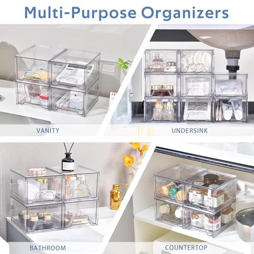 Return Policy Fast Delivery Trusted seller 6 Pack Stackable Storage Drawers, Acrylic Bathroom Makeup Organizer and Storage,Clear Plastic Pull Out Drawers for Vanity, Undersink, Kitchen Cabinet, Pantry Organization and Storage Product Description Stackable Design: The plastic storage drawers are stackable and can be used not only vertically but also side by side, saving the valuable space and improving storage efficiency. You can stack them according to the shape you needs to keep your space more organized Transparent Design: Our storage drawers for organization and storage make it easy to organize by allowing you to quickly find what you need. The clear acrylic design allows you to easily see the items inside the bin,enabling you to quickly find and retrieve the items you need without opening it,greatly facilitating daily use Pull-Out Handle Design: Our stackable organizer drawers are designed with built-in pull-out handles,it is convenient for you to store and take out items. Waterproof and dustproof features can keep the stored items dry and clean,making it flexible to pull out and push back Non-Slip Design: In order to ensure stability during use,each storage drawer is equipped with a silicone non-slip pad that can be attached directly to the bottom of the box. Even on smooth surfaces,it remains stable and does not move,providing you with convenient storage and organization Multi-Purpose Organizers: Our drawer organizer fit to various spaces,such as bathroom countertop,under sink,kitchen cabinet,laundry,medicine cabinet,pantry shelf,vanity,offices,garages,craft rooms. You can flexibly use our Storage Drawer for organization and storage according to your needs Shipping Returns Payment Shipping Shipping is FREE to all addresses other than APO/PO boxes in the lower 48 states. All our stock ships from US-based warehouses. Shipped via USPS or UPS (depending on location and package weight) Unless stated otherwise, all orders will ship within 24-72 hours of your payment being processed. Check our feedback to see the great reviews of FAST shipping we offer. Returns Seller does not accept returns Payment We currently accept payment via eBay managed payments only. Once payment is cleared, we will dispatch your shipment within 1-3 business days. Please refer to the "Shipping" tab for more information regarding shipping speed to your destination.