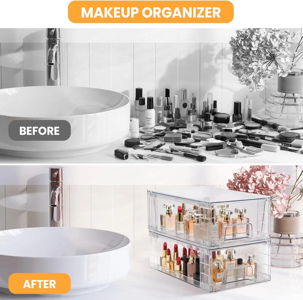 Store New Arrivals Add to Favorite View Feedback Contact 6 Pack Stackable Storage Drawers,Plastic Organizers Bins, Drawers Storage with Handles and Movable Dividers for Organization and Storage in Fridge,Bathroom, Pantry, Kitchen Cabinets, under Sink Description Item model number storagedrawers-clear 2set Item Package Quantity 1 Batteries Required? No Assembly Required Yes Color clear Item Weight 4.18 pounds Material Plastic Assembly Instructions Description No Assembly Required Batteries Included? No Frame Material Plastic Number of Drawers 2 Product Dimensions 7.5"D x 12"W x 7.5"H Size 2 Pack [Removable Organizer Bins]: Each drawer of this storage drawers unit measures [12 inches x 7.5 inches x 4.5 inches]. Each stackable storage drawers comes with removable dividers, allowing you to store not only small items but also longer items by simply removing the dividers. The "one box for one thing" or "one box for one category" storage method makes it easy to achieve [Stackable Design]: This plastic drawer storage is stackable and features a groove on top for easy stacking and securing. The stackable organizer can be used vertically or side-by-side to suit various storage needs. You can put other items on top of the acrylic bins, saving space and making cabinet more tidy. It's an good item for home or refrigerator organizers and storage [Clear & Sturdy]: This clear organizing is made of thick clear plastic, with a transparent, stylish and sturdy design to ensure that the product can be used for a long time. The clear material can clearly display the items, and you can quickly find and take them out. Save your time and take them out easily [Pulling Handle & Non-Slip Design]: The organizer uses a pull-out handle design and an internal track to ensure that the outer frame does not move left and right when the drawer is pulled out, and it is very smooth to pull out and push in.The product includes an extra silicone pad, which is attached to the bottom of the stackable drawers to prevent the storage box from sliding [Suitable Various Scenarios]: This plastic storage drawers is versatile and suitable for various places in the room. It can be used for organization and storage in bathroom countertops, Pantry storage, refrigerator, medicine storage, under the sink, kitchens, closets, cabinets, dressers, coffee bars, offices and other places. You can flexibly apply our storage boxes in different places according to different needs Product description COKIHOM Stackable Fridge Organizers and Storage 1 Pantry Organization 2 Pantry Organization 3 Fridge Organization 4 Undersink Organization 5 Coffee Pod Organization Before & After Comparison, Keeping Everything Organized! 1 Product Data 2 Product Details 3 lnstallation Steps Bathroom Organizers and Storage The video showcases the product in use. The video guides you through product setup. The video compares multiple products. The video shows the product being unpacked. Bathroom Organizers and Storage Merchant Video Pantry Organizers and Storage The video showcases the product in use. The video guides you through product setup. The video compares multiple products. The video shows the product being unpacked. Pantry Organizers and Storage Merchant Video Medicine Cabinet Organizer The video showcases the product in use. The video guides you through product setup. The video compares multiple products. The video shows the product being unpacked. Medicine Cabinet Organizer Merchant Video Refrigerator Organizers and Storage The video showcases the product in use. The video guides you through product setup. The video compares multiple products. The video shows the product being unpacked. Refrigerator Organizers and Storage Merchant Video What material are these drawers made of? These storage drawers are made by PET material. Will the drawer slide when pulled out? Equipped with non-slip pads, it prevents the drawer from shifting when pulled out, ensuring smooth and effortless operation. What can these storage drawers hold? These storage drawers are suitable for various occasions and are ideal for placement in pantry, kitchen refrigerators, or under bathroom sinks. They can be used to store snacks, small skincare products, toothbrushes, and other items. Do the drawers have handles? Yes, these drawer organizers come with handles for easy use. Are the dividers removable? Yes, these drawer organizers have removable dividers. They can store a variety of items, including small items and long, narrow items. ABOUT US We offer the best prices around on high quality products. Our E-store includes media such as books, movies, music and games while offering electronics, toys, sporting apparel, clothing, tools, general home, garden items and more. SHIPPING We are always working hard to ensure your package arrives as soon as possible. Please understand that some factors like weather, high postal traffic, and the performance of shipping companies are outside of our control. We offer free shipping to the lower 48 states and ship within 2 business days of payment, usually sooner. We do not accept P.O. Boxes. Please provide a physical address. For shipping outside of the continental USA, we only use eBay's Global Shipping Program.The item is shipped to KY and then sent to the rest of the world. International customers are responsible for all duties and taxes. Continue to check out in order to calculate costs for shipping the item to your country. Messages regarding eBay's Global Shipping Program MUST be directed at eBay EXCLUSIVELY. RETURNS We offer a 30-Day Return Policy on items which you are not completely satisfied with. You have the option for a full-refund or an exchange of the item. No returns are available on items shipped outside of the USA. PAYMENT We accept PayPal. CONTACT US This page content is yet to come Please ad us to your favorite seller and visit again later Thank You CUSTOMER SATISFACTION We try our very best to make sure every customer is completely satisfied. I