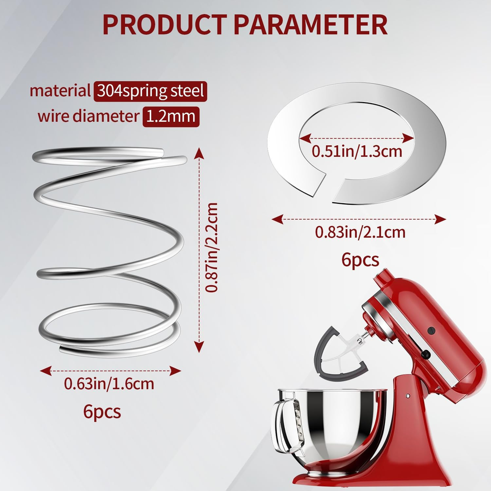6 Pack Stainless Steel Spring and Washer Replacement for KitchenAid Mixer Parts