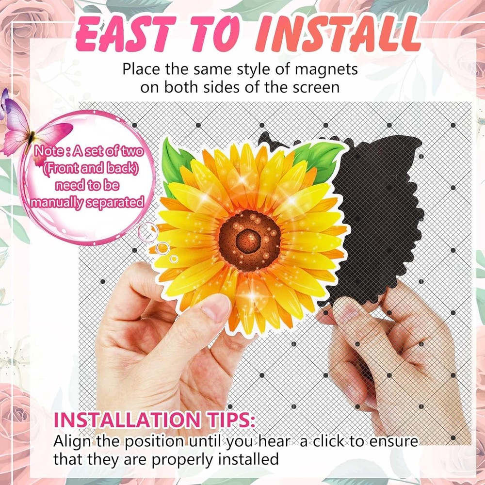 About this item What you will get: You will receive 6 pairs screen door decals in 6 different styles, each sticker offers a colorful vibrant design. Effective Visual Indicator: These screen door protectors help show that the screen is closed, helping prevent pets and people from bumping into your screen door. Easy to Use: You just need to place the screen between them, then they will be magnetically attracted together, ensuring a secure fit. Soft Material: Bird anti-collision window clings are mainly made of PVC and magnet with duplex printing, lightweight and flexible, easy to paste or take down. Wide Range of Application: These screen door magnets are perfect for all seasons. Use on any mesh door screen, garage screen, or sliding screen door. Also suitable for fridge stickers, body decoration, etc. Dimensions: 0.2 x 4.7 x 4.7 inches.