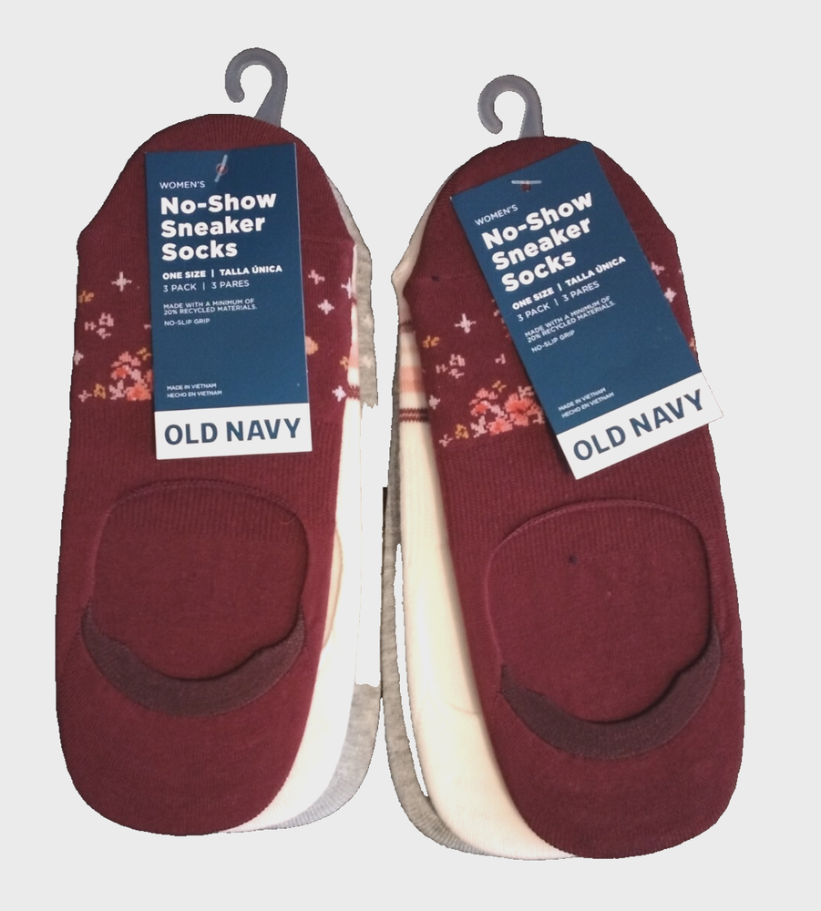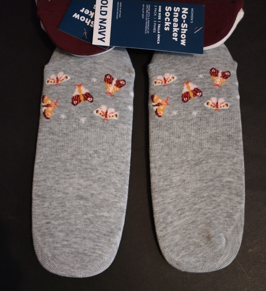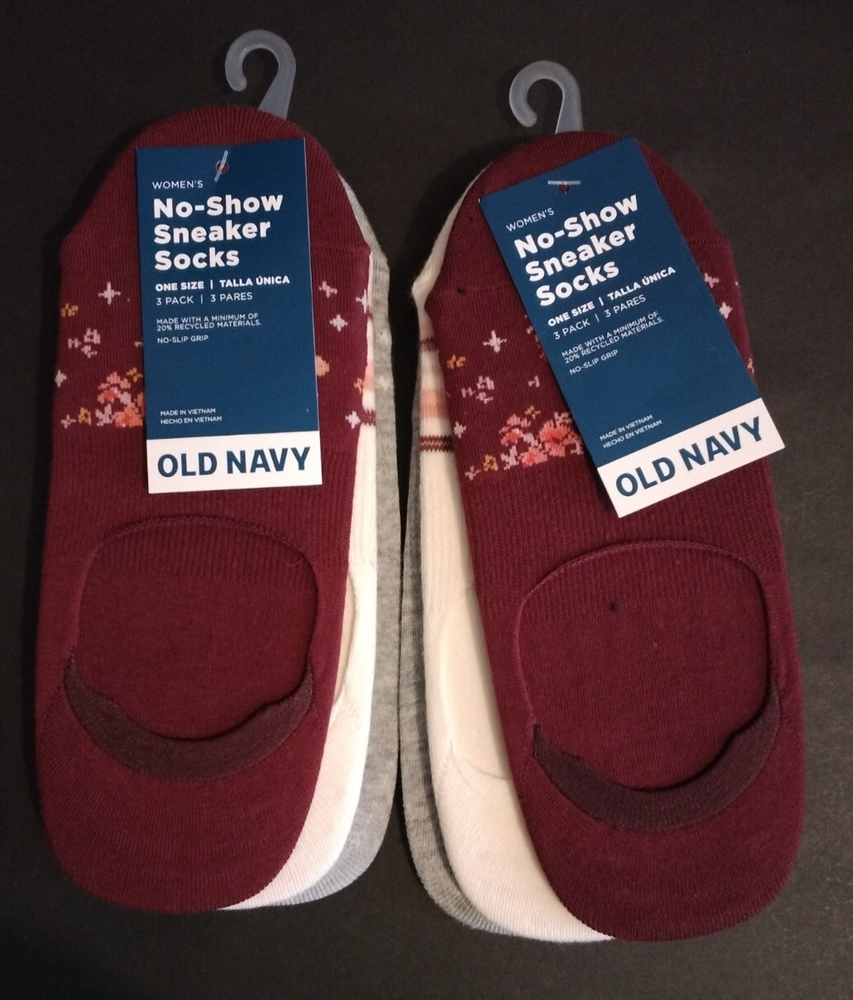 Old Navy New With Tags Woman's 6 Pairs (2 Packs Of 3 Pair Each) One Size Butterfly & Flower Designs See Photos No Show No Slip Grip Ankle Sneaker Shoe Socks Machine Washable As Seen In Photos From A Smoke Free Home