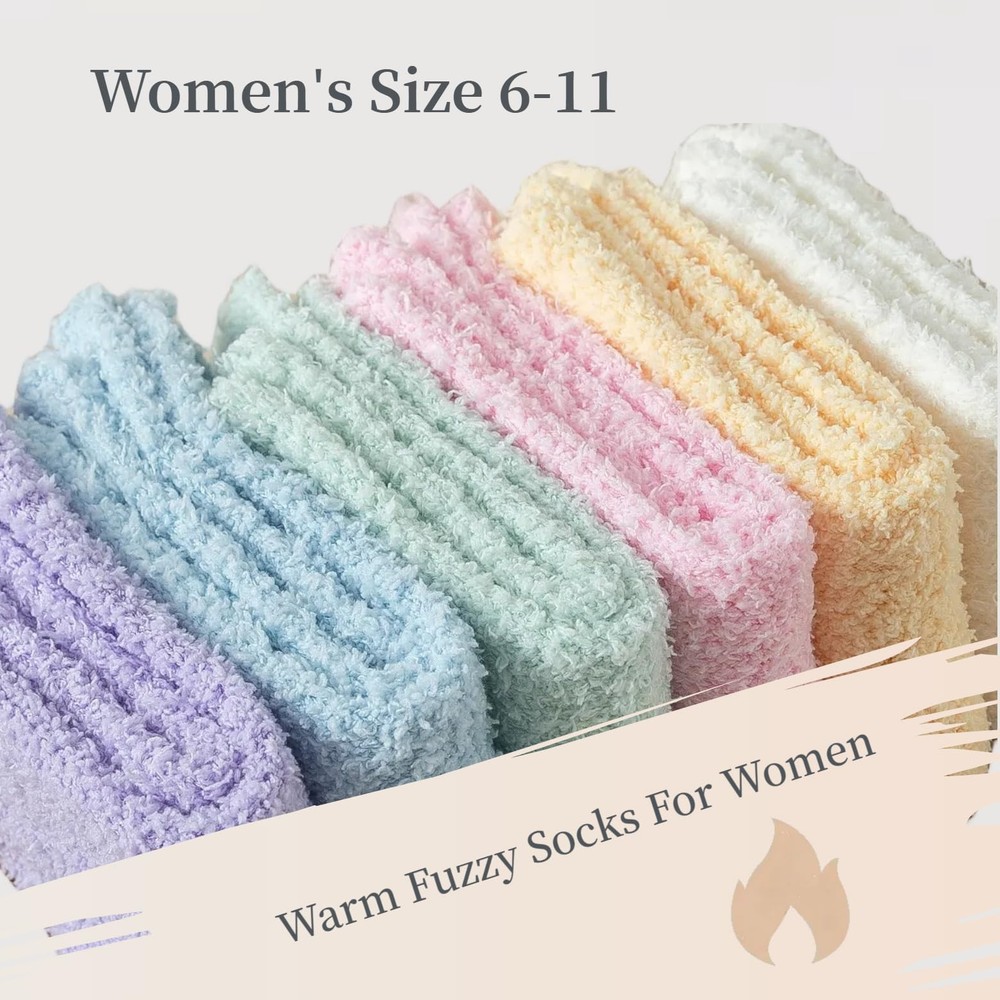 Women Fuzzy Socks - Women's winter socks don't shed lint and won't prick feet.Breathable for all-day foot wear,our fuzzy socks ultra cozy, warm, ultra-soft and thick plush. These fuzzy socks for women are good choice for you to wear as sleeping socks or slipper socks walking at home freely. Warm Sleeping Socks - The Sleeping Socks is nice for wearing during sleep.Sleeping socks will keep your body warm and stabilize your rhythm so you can have a nice deep sleep with bed socks in winter.Giving your feet maximum coziness and keeping you warm in cold days, Keeping your feet warm is important with your health. Fluffy Socks - Coral Velvet Inner and Outer Design. Fuzzy slipper socks for women is blend of High Quality Material.Very soft cozy socks are made of premium Microfiber provide maximum coziness for your feet keeping them warm, soft and sweat-free. Slipper Socks - The slipper socks for women are elastic. Shoe Size: 6-11. One size fits most people, nice length, above the ankle, no squeezing your feet in shoes around the house and your toe is not hurting, easy to slip on as well as off. Womens Cozy Socks - Perfect For Many Occasions. Not only can cozy socks for women be worn with a variety of pants and skirts, but Cozy Socks perfect for everyday wear, work, sleeping, house, indoor and travelling and sleepingIt is a perfect gift for your wife, daughter, girlfriends, friends and colleagues.