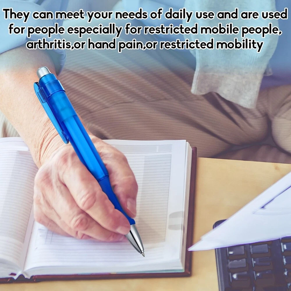 6 Pcs Big Pens Jumbo Pen Bulk with Refills Extra Ballpoint Pens Black Ink 4167 Designed with an easy-grip feature, these jumbo-sized pens are compatible with warehouse gloves and perfect for persons with mobility difficulties. Their 1.8 cm diameter ensures a firm hold and comfort for individuals suffering from Parkinson's disease, arthritis, or hand discomfort, making daily writing tasks more manageable and convenient. These pens, with an impressive length of 8 inches, attention and are hard to misplace in a busy workspace. Their retractable design, which operates with a simple press, coupled with a non-slip rubber handle, ensures a seamless and user-friendly experience. Enjoy a smooth writing experience with our retractable ballpoint pens. The thick black ink flows evenly, producing clear, bold lines for an effortless and satisfactory script. These pens are designed for quality and optimal performance. With a classic, professional design, these pens are perfect for a wide range of applications. They cater to students, workers, and the elderly at schools, hospitals, and offices. A versatile tool, these pens are a reliable choice for your diverse writing needs. The pack includes 6 oversized retractable ballpoint pens and 12 additional refills, ensuring you're never out of ink. Perfect for note-taking, studying, or work, these pens make for a great gift for yourself or someone special. Color: multi-color material: plastic Package Contents: 6 x pens 12 x replacement refills