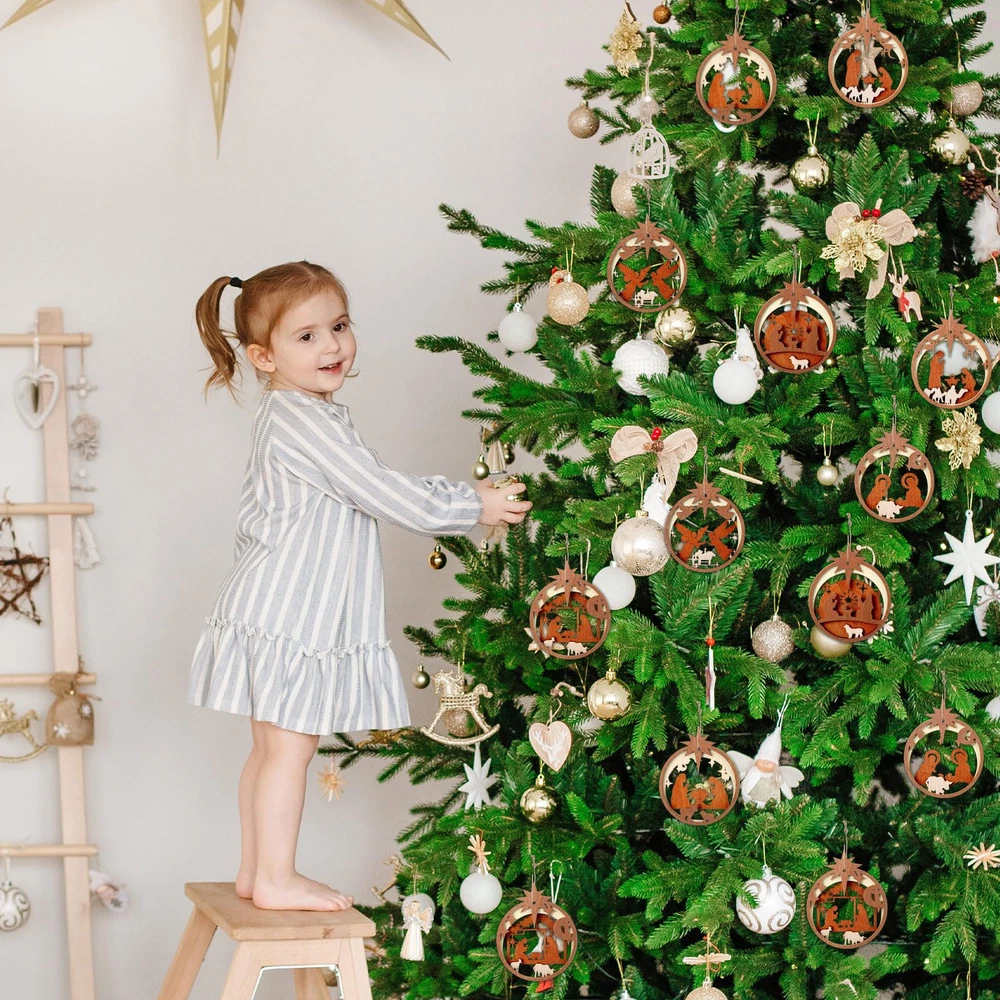 What You Will Receive: you will receive 6 pieces of wooden nativity ornaments; The scene of the birth of Jesus shows us the traditional story and is a stylish way to celebrate the birth of Jesus, and it is also a good way to worship him in our hearts Handmade Nativity Artwork: these Christian Christmas ornaments are hand carved of three layer nature basswood material, combined with high detailed laser cut process, which clearly show us the Christmas story and the birth of Jesus Easy to Hang: the birth of Jesus Christmas decorations are a nice complement to your family Christmas decoration with its classic theme; There is a hole in the top, so you can use the twine included in the package to hang it on the Christmas tree, wall, window or rearview mirror of the car Size Information: each religious ornament for Christmas tree measures approx. 4.7 x 4.3 inches, the right size makes them can be well hung on the Christmas tree; You can put them in the living room, bedroom, bedside, and other places where you want to hang and decorate 3D Christmas Decoration: this nativity scene ornament is always the ideal way to decorate your home in the coming Christmas, its 3D design will create a more vivid atmosphere for your Christmas tree, as well as its classic design