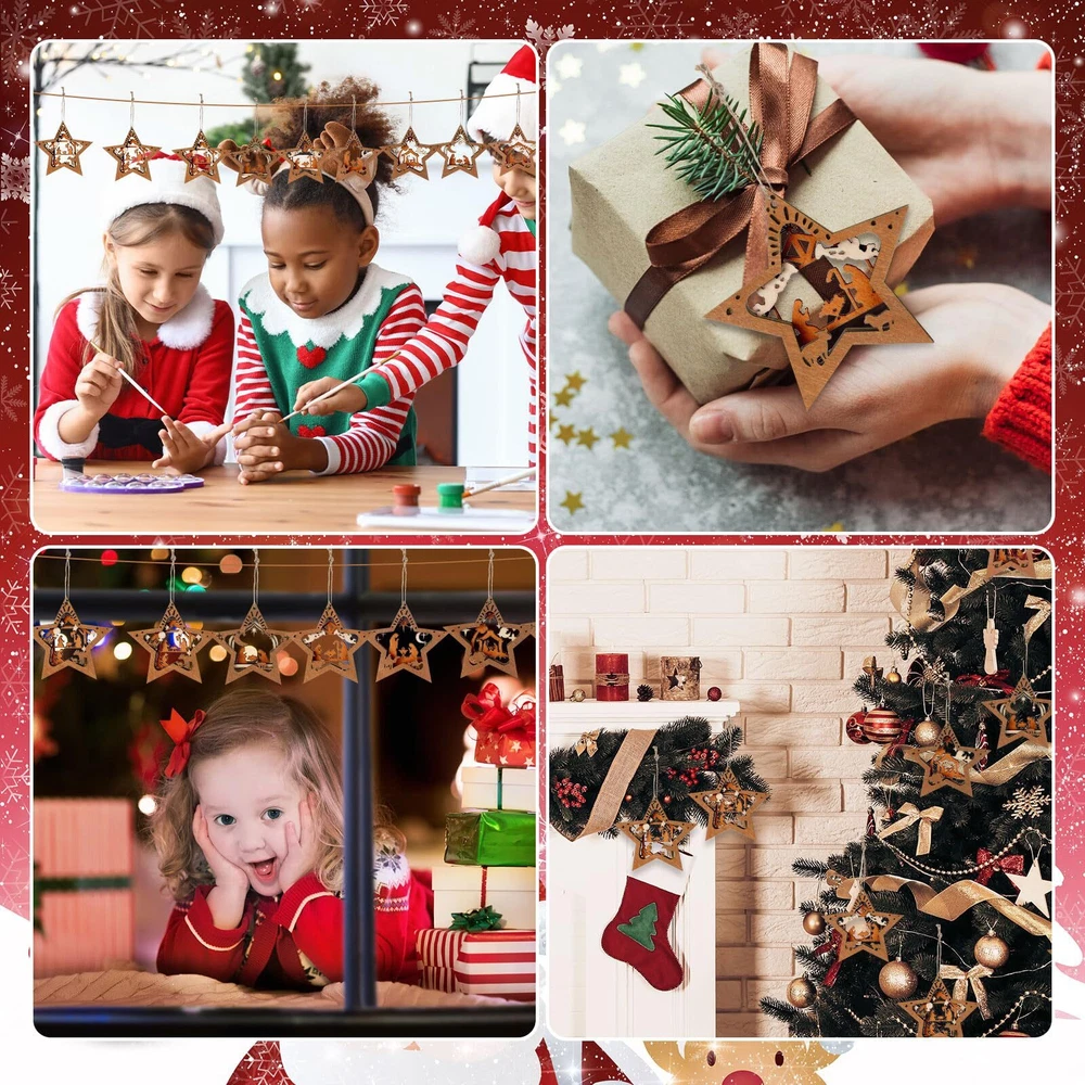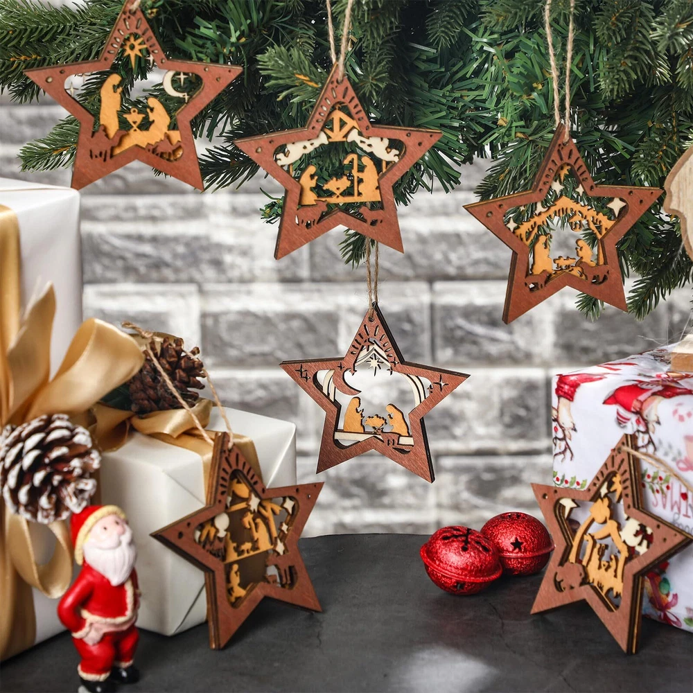 What You Will Receive: you will receive 6 pieces of wooden nativity ornaments; The scene of the birth of Jesus shows us the traditional story and is a stylish way to celebrate the birth of Jesus, and it is also a good way to worship him in our hearts Handmade Nativity Artwork: these Christian Christmas ornaments are hand carved of three layer nature basswood material, combined with high detailed laser cut process, which clearly show us the Christmas story and the birth of Jesus Easy to Hang: the birth of Jesus Christmas decorations are a nice complement to your family Christmas decoration with its classic theme; There is a hole in the top, so you can use the twine included in the package to hang it on the Christmas tree, wall, window or rearview mirror of the car Size Information: each religious ornament for Christmas tree measures approx. 4.7 x 4.3 inches, the right size makes them can be well hung on the Christmas tree; You can put them in the living room, bedroom, bedside, and other places where you want to hang and decorate 3D Christmas Decoration: this nativity scene ornament is always the ideal way to decorate your home in the coming Christmas, its 3D design will create a more vivid atmosphere for your Christmas tree, as well as its classic design