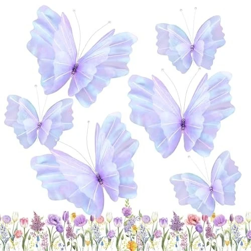 Elegant Butterfly Party Decorations Transform your event with our stunning purple gauze butterflies, available in two sizes: 19.69 inches and 11.81 inches. This 6-piece set brings a dreamy, whimsical charm to weddings, celebrations, and more. Exquisite Design, Realistic Appeal Crafted with precision, these large artificial silk butterflies captivate with their elegant and realistic appearance. They infuse any occasion with a fairy tale atmosphere and enchanting charm. 3D Beauty Experience a striking 3D effect with our big butterfly decorations. The layered design highlights the wings and body, bringing each butterfly to life in a captivating display. Simple Installation and Versatility Easily adorn walls, ceilings, or tables with these giant butterfly decorations. Their quick and convenient setup makes them perfect for any space, enhancing your decor with minimal effort. Vibrant and Quality Made from high-quality materials, these large butterfly decorations promise durability. The bright colors and exquisite shapes ensure they remain a beautiful part of your decor for any occasion.