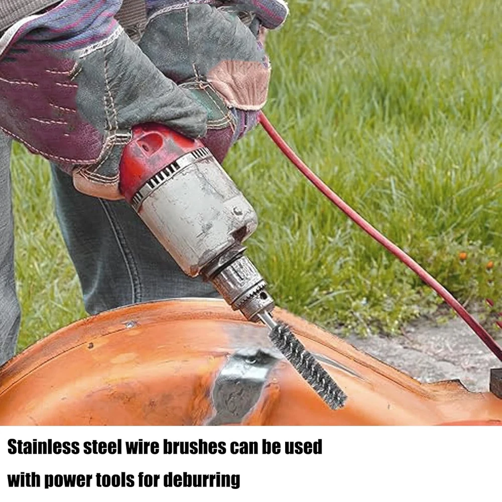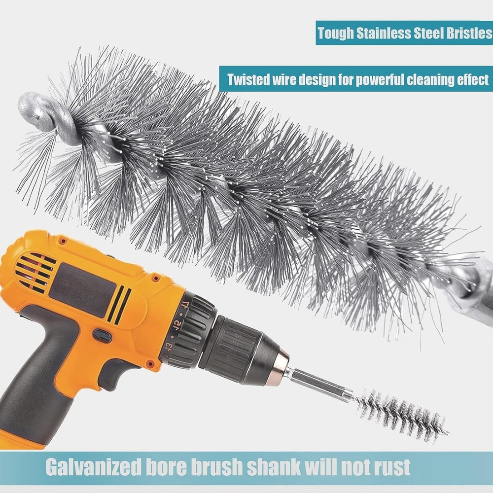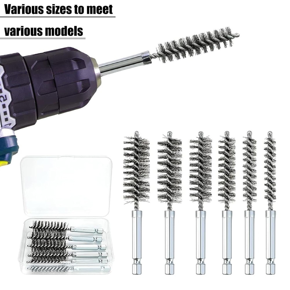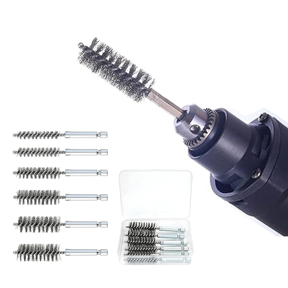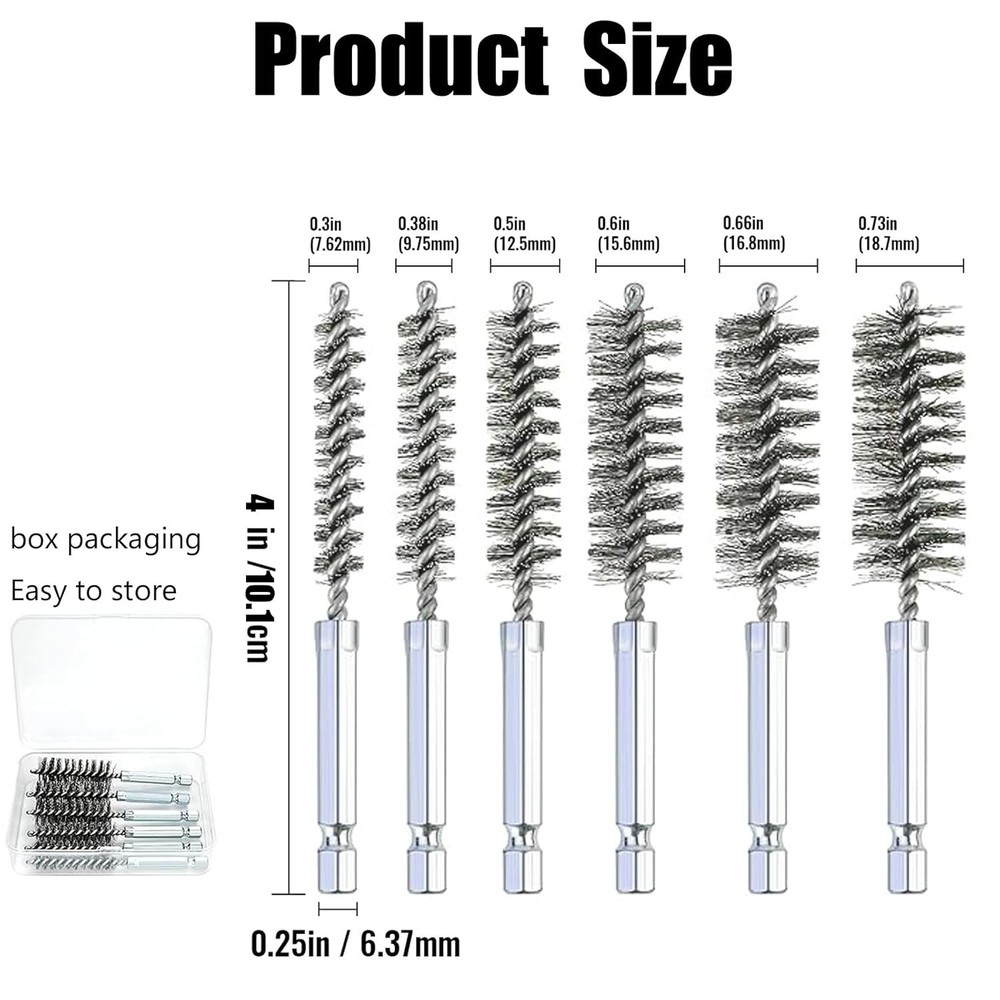 6 Pcs Stainless Steel Bore Brush with 1/4" Hex Shank Twisted Wire silvery Product Details Package Dimensions : 4.53 x 3.5 x 1.06 inches; 4.16 ounces Item model number : sw44asd Manufacturer : GERILKAI Country of Origin : China Material: Stainless Steel Brand: GERILKAI Grit Material: Stainless Steel Bristle Type: Wire Color: silvery 【Quality material】Our inner hole cleaning brush is made of stainless steel, which is durable, wear-resistant, efficient and can be used for a long time. Wire bristles in the form of twisted wires, can completely remove rust and details. 【Practical design】the wire cleaning brush is designed for easy access into narrow holes and confined areas, can be applied for ports, tubes, bearings, cylinders or other narrow clean up requirements. 【Size】There are 6 different sizes of stainless steel inner hole brushes, including diameters of 8mm, 10mm, 12mm, 15mm, 17mm and 19mm, a variety of sizes will meet your various cleaning needs. 【Wide range of applications】These hole brushes have a wide range of applications, can be used with tools such as power drills, impact drivers, die grinders, etc., will provide you with effective cleaning, very suitable for cleaning car interiors, pipes, removing burrs, paint, stains, rust wait. 【Warm note】please do not exceed 600 rpm, and do not turn counterclockwise, just for push and pull motion only; Pay attention to the correct use of these brushes, in order to prolong the service life Specification:Color: Silver Materials: Stainless Steel Brush Diameter: 8mm, 10mm, 12mm, 15mm, 17mm, 19mm Number of Items: 6 Length:4 inch Hex Shank Diameter: 1/4 inch Package Includes: 1Pcs x 8mm Bore Brush,1Pcs x 10mm Bore Brush,1Pcs x 12mm Bore Brush,1Pcs x 15mm Bore Brush,1Pcs x 17mm Bore Brush,1Pcs x 19mm Bore Brush,1Pcs x Transparent plastic box
