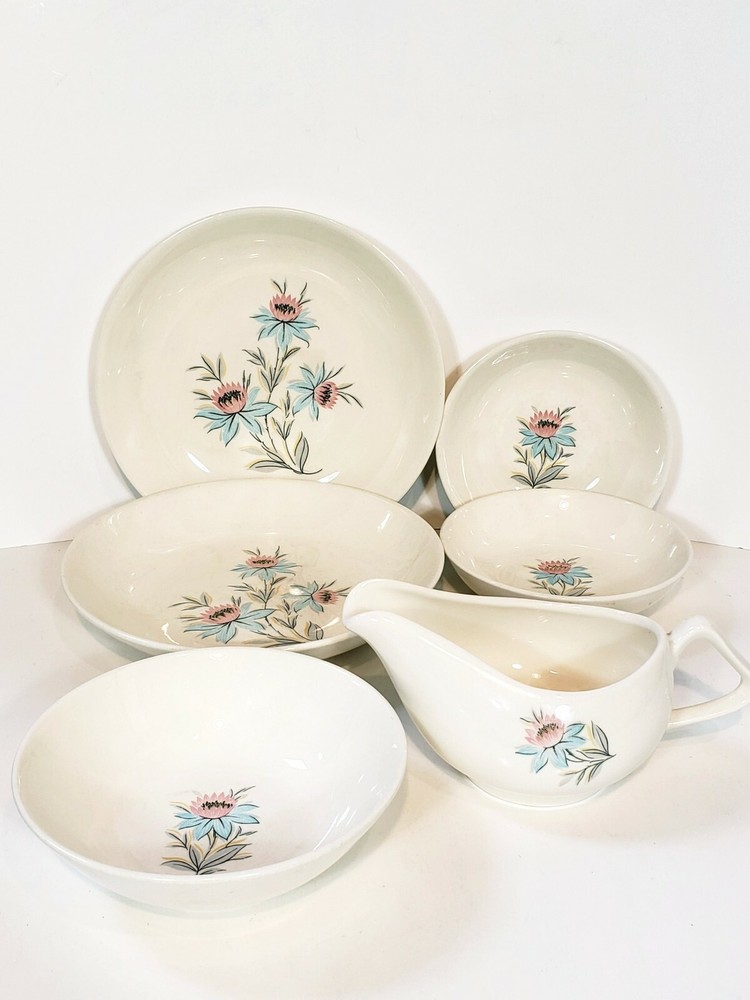 Vintage: Yes Style: Mid-Century Modern gtin13: Does not apply Brand: Steubenville Object Type: bowls and gravy boat Model: Fairlane Color: Multi-Color Type: gravy boat & bowls Original/Reproduction: Vintage Original UPC: Does not apply Production Technique: Pottery Set Includes: Bowl Original/Licensed Reproduction: Original Material: Porcelain