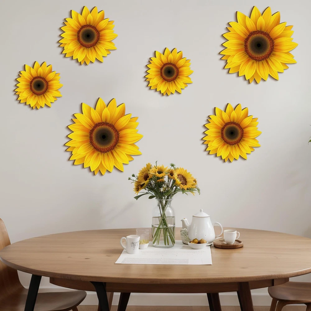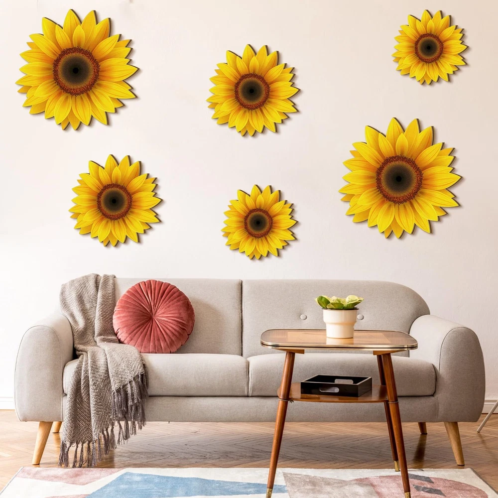 Features: Easy to hang: The sunflower decor for wall is equipped with metal triangle rings, making it relax to add them to room wall or surface, so it is easy to hang and can save your time of installation. Nice gift for friends: The wall decoration sunflowers are suitable as delightful and thoughtful gifts for friends and family members who appreciate rustic and charming home decor items, and when they receive these gifts, they will feel happy. Specifications: Material: wood Main color: multicolor Size: about 11.81 inches/ 30 cm, 9.84 inches/ 25 cm, 7.87 inches/ 20 cm in diameter Package includes: 6 x Sunflower wooden wall signs Notes: Manual measurement, please allow slight errors on size. The color may exist a slight difference due to different screen displays. The edges of the decorations may be rough and sharp, please use them carefully. Sufficient Quantity: you get 6 pieces of sunflower wall hangings, which are enough for you to decorate room or wall and can meet your family decoration needs, to brighten up your house; the edges of the decorations may be rough and sharp, please use them carefully Different Size: our wall hanging decoration contains 3 different sizes, which are about 11.81 inches/ 30 cm, 9.84 inches/ 25 cm and 7.87 inches/ 20 cm in diameter, giving you the option to mix and match for a varied wall display Credible Material: the sunflower wall hanging art is made of reliable wood material, which is solid, ensuring durability and longevity as a decorative item; And this material is safe, you can hang them on your home at ease Cute Sunflower Design: our wood wall decoration art adopts the design of a simple and beautiful sunflower shape, yet charming, which adds a touch of warmth and coziness to your room or wall decoration and creates a warm atmosphere in room or living space for you Wide Application: the sunflower decor symbolizes provides a good choice to use the sunflower sign to decorate bedroom, living room or other spaces
