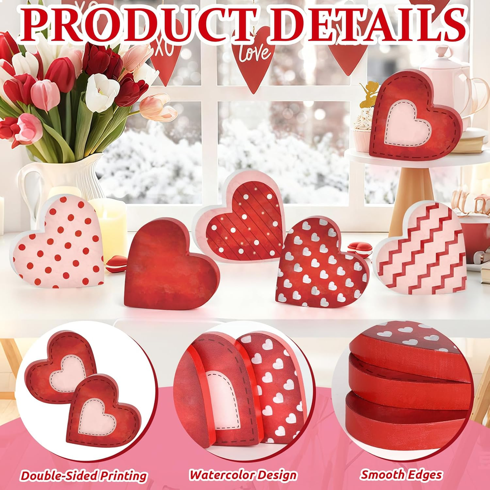 Store New Arrivals Add to Favorite View Feedback Contact Fast deliveries to the customer's home Quality customer service John Make the customers happy! 6 Pcs Valentine'S Day Wooden Heart Table Signs Red Wood Table Centerpiece Block Valentine Decorations Indoor Vintage Tiered Tray Decor for Home Office Desk Shelf Mantel Love Wedding Anniversary Party Description Package Includes: You will receive 6 pcs Valentine's Day wooden hearts table signs in different designs. The ample quantity allows for individual or combined placement, let the red wood table centerpiece block adding a charming touch to your Valentine's Day decorations Valentine Style Design: These Valentine decorations indoor adopt a heart-shaped design, and feature the watercolor pattern style. The overall design of the classic tiered tray decor is cute, exquisite and slightly retro, The Valentine's Day tabletop full of Valentine's Day charm, creating a warm and romantic atmosphere Suitable Size: Each Valentine's Day decorations for tiered tray measures approximately 3.5 × 3.3 inches and is about 0.6 inches thick. The size is ideal, eye-catching without taking up too much space. The Valentines Day centerpiece for tables are made of wood, printing is clear, colors are vibrant, and can stand independently, not easily damaged, can be used for a long time Valentine's Day Decorations for Home: These Valentine's Day table decorations centerpieces are suitable for placing on office desk, tiered tray, shelf, fireplace, mantel, dining tables, or even window to decorate your living room, bedroom, kitchen and more. These Valentine's Day table sign are adding a charming Valentine's Day touch to every corner of your home Ideal Presents: You can give these Valentine's Day table centerpiece as a Valentine's Day gift to your loved one or friends, surprising him / her on this special day. Let who received Valentine's Day shelf decor recall unique Valentine's Day memories with these heart decor, spreading joy and happiness to those you love Product description Item model number WM-Watercolor Heart Signs Color pink Product Dimensions 9 x 8 x 0.07 inches Item Weight 12.6 ounces Theme heart Size Large ABOUT US We offer the best prices around on high quality products. Our E-store includes media such as books, movies, music and games while offering electronics, toys, sporting apparel, clothing, tools, general home, garden items and more. SHIPPING We are always working hard to ensure your package arrives as soon as possible. Please understand that some factors like weather, high postal traffic, and the performance of shipping companies are outside of our control. We offer free shipping to the lower 48 states and ship within 2 business days of payment, usually sooner. We do not accept P.O. Boxes. Please provide a physical address. For shipping outside of the continental USA, we only use eBay's Global Shipping Program. The item is shipped to KY and then sent to the rest of the world. International customers are responsible for all duties and taxes. Continue to 'check out' to calculate costs for shipping the item to your country. Messages regarding eBay's Global Shipping Program MUST be directed at eBay EXCLUSIVELY. RETURNS We offer a 30-Day Return Policy on items in which you are not completely satisfied with. You have the option of a full-refund or an exchange of the item. No returns are available on items shipped outside of the USA PAYMENT We accept PayPal. CONTACT US This page content is yet to come Please ad us to your favorite seller and visit again later Thank You CUSTOMER SATISFACTION We try our very best to make sure every customer is completely satisfied. If there's a problem, message us! We're happy to help. WE ACCEPT