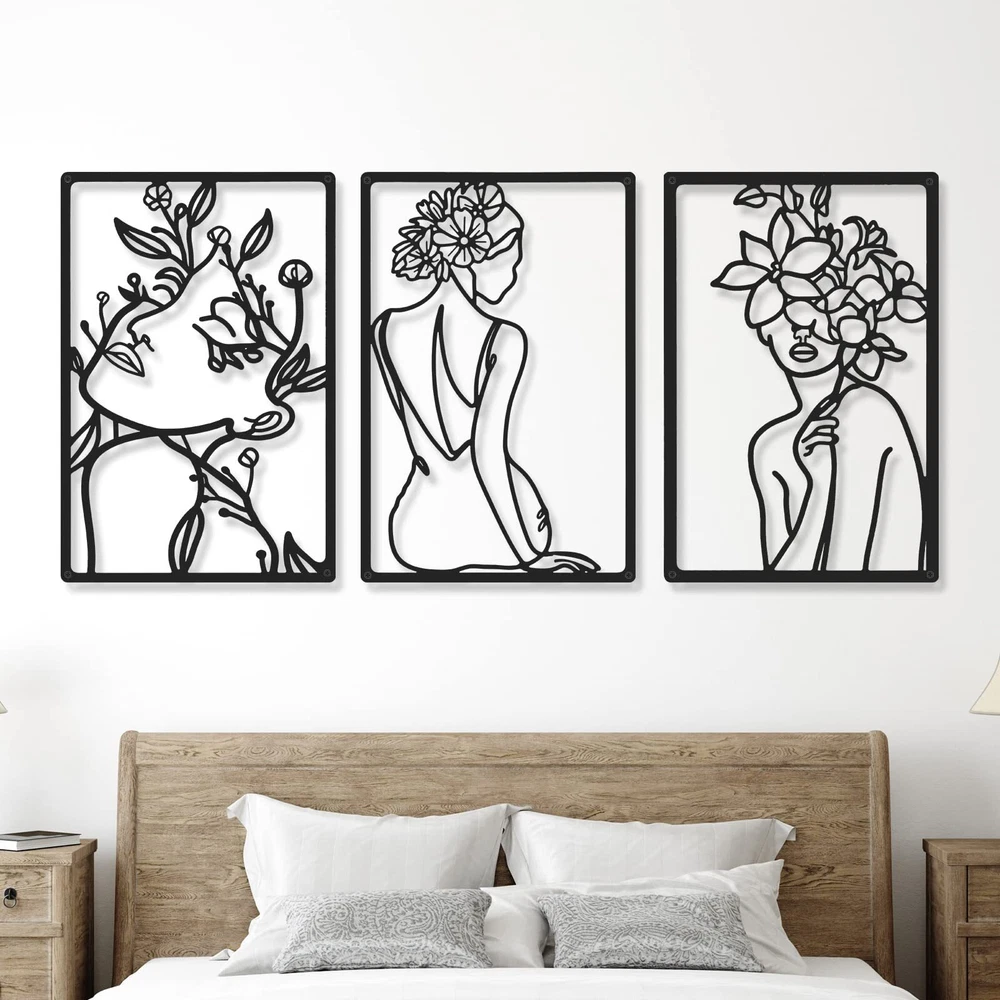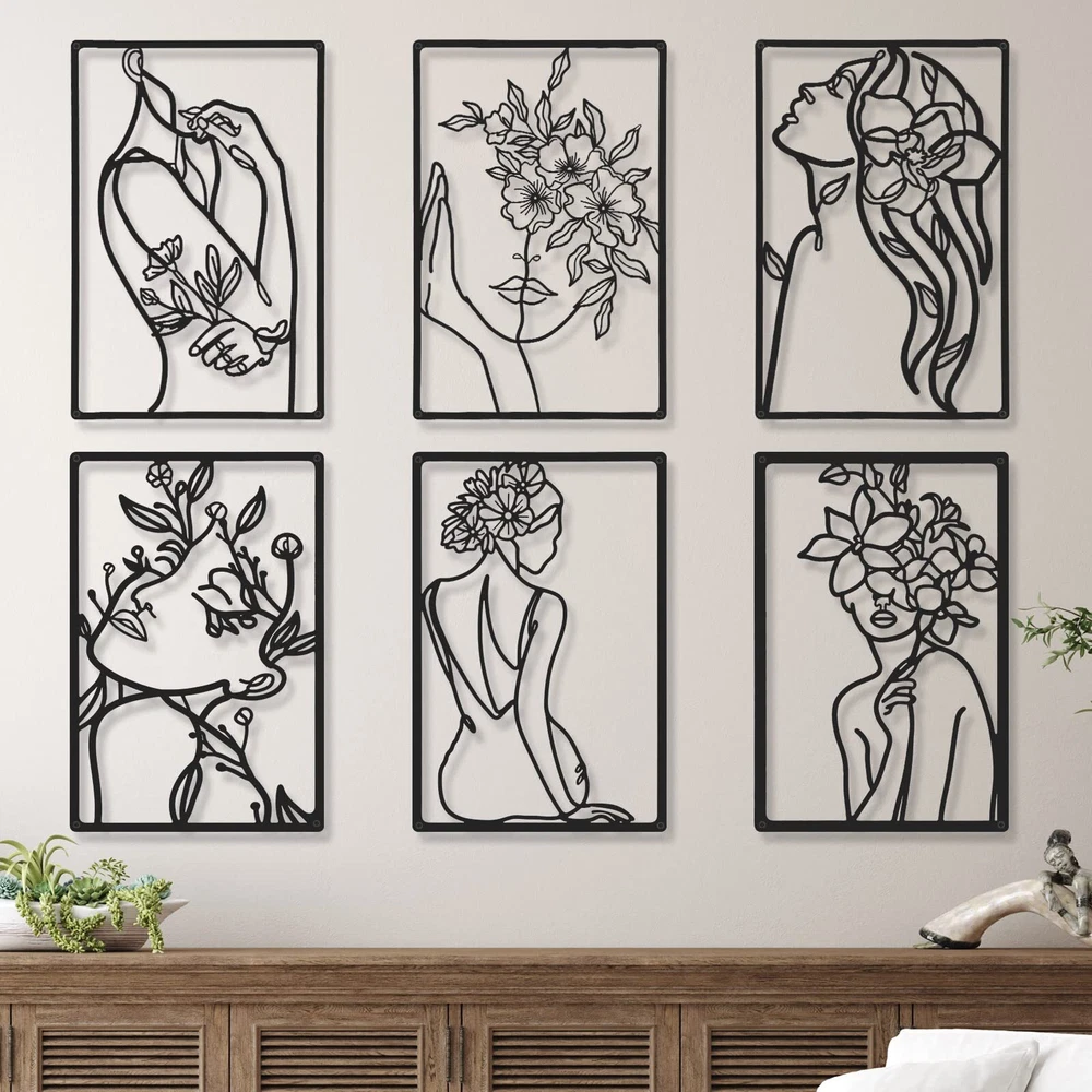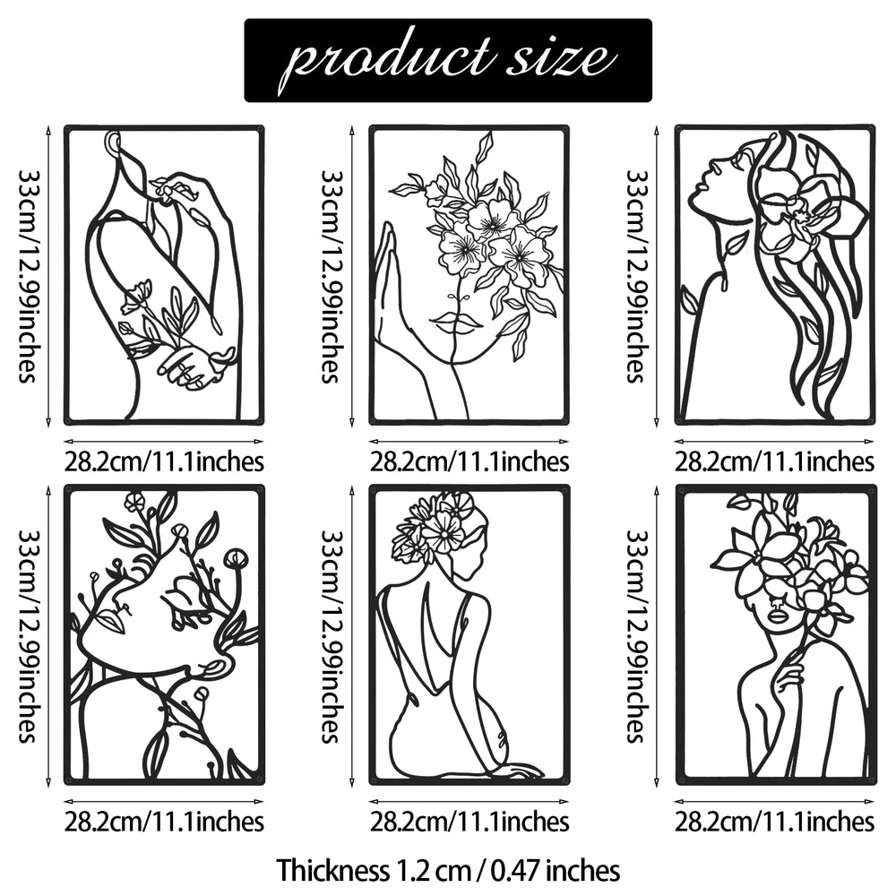 6 Pieces Black Metal Wall Decor Modern Minimalist Abstract Woman Wall Art Aes...