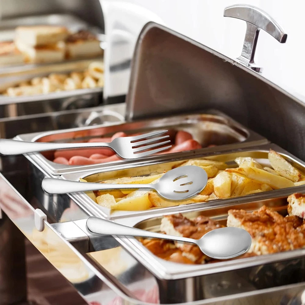 Store New Arrivals Add to Favorite View Feedback Contact 6 Pieces Large Serving Flatware Silverware Set, 2 Slotted Serving Spoon, 2 Serving Spoon and 2 Serving Fork for Party Buffet Dinner Banquet (Silver) Description Item Weight 349 Grams Style Modern Color Silver Special Feature Rust Resistant Material Stainless Steel Is Dishwasher Safe Yes Is Stain Resistant Yes Number of Pieces 6 Finish Type Polished Package Dimensions 8.67 x 6.42 x 1.58 inches Product Care Instructions Dishwasher Safe QUALITY- Made of high quality stainless steel which ensures your health, Rust-resistant, sturdy and durable for years to come. Dishwasher-safe, heavy duty and durable. GREAT POLISHED- Clean and classy looking, smooth surface and mirror polish makes these forks always keep shining, perfectly match your current silverware set and tableware. SIZE- Slotted Serving spoon and serving spoon is 21.8cm/8.6 inches in length , serving fork is 22.6cm/8.9inches in in length with proper thickness and nice weight, long handles for comfortable holding. PRACTICAL FUNCTION- Suitable for all your parties, events and buffets, and they works well on catering, barbecue, wedding, celebration, banquet, holiday meal, potluck, home, restaurant, hotel, etc. SET OF 6- 2 pieces medium serving spoons, 2 pieces slotted serving spoons and 2 pieces serving forks, heavy duty catering serving utensils will meet all food service needs. If you are not satisfied with the product or there is any issue with the product, please contact with us and we will solve it for you. Specifications Color: Silver Material: Stainless steel with a high polish finish Simple Design: Easily matches existing flatware in your kitchen Dishwasher safe: Sturdy and durable Size: Forks in length: 22.6 cm/ 8.9 inches Solid spoons in length: 21.58 cm/ 8.58 inches Slotted spoons in length: 21.58 cm/ 8.58 inches Package includes: 2 x Serving forks 2 x Serving solid spoons 2 x Serving slotted spoons ABOUT US We offer the best prices around on high quality products. Our E-store includes media such as books, movies, music and games while offering electronics, toys, sporting apparel, clothing, tools, general home, garden items and more. SHIPPING We are always working hard to ensure your package arrives as soon as possible. Please understand that some factors like weather, high postal traffic, and the performance of shipping companies are outside of our control. We offer free shipping to the lower 48 states and ship within 2 business days of payment, usually sooner. We do not accept P.O. Boxes. Please provide a physical address. For shipping outside of the continental USA, we only use eBay's Global Shipping Program.The item is shipped to KY and then sent to the rest of the world. International customers are responsible for all duties and taxes. Continue to check out in order to calculate costs for shipping the item to your country. Messages regarding eBay's Global Shipping Program MUST be directed at eBay EXCLUSIVELY. RETURNS We offer a 30-Day Return Policy on items which you are not completely satisfied with. You have the option for a full-refund or an exchange of the item. No returns are available on items shipped outside of the USA. PAYMENT We accept PayPal. CONTACT US This page content is yet to come Please ad us to your favorite seller and visit again later Thank You CUSTOMER SATISFACTION We try our very best to make sure every customer is completely satisfied. If there's a problem, message us! We're happy to help. WE ACCEPT Copyright © 2021 AutoDS. | All Rights Reserved