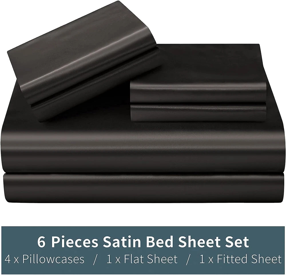 Store New Arrivals Add to Favorite View Feedback Contact Fast deliveries to the customer's home Quality customer service John Make the customers happy! 6 Pieces Queen Satin Sheets Luxury Silky Black Satin Bedding Sheet Set, 1 Deep Pocket Fitted Sheet + 1 Flat Sheet + 4 Pillow Cases Description 100% Polyester Satin 6 PIECES SILKY SATIN BED SHEET SET - Luxury satin sheets queen set includes 1 x Deep Pocket Fitted Sheet (60" x 80" + 16"), 1 x Flat Sheet (90" x 102"), 4 x Pillowcases (20" x 30"). Deep pocket fitted sheet with elastic all around, suitable for 14" to 16" deep mattress. P Pothuiny have collected everything you need to upgrade your bedding, these are some of the softest and most affordable sheets you will ever find. TOP QUALITY CONSTRUCTION - Black Silky Satin Sheets is made of 100% Polyester (Satin Fabric), soft like as silk, smooth, breathable and sensitive skin-friendly. Polyester satin provided a beautiful glossy luster and heavenly soft texture, let you enjoy unparalleled comfort just like in a 5-star luxury hotel ! P Pothuiny satin sheet set will definitely surprise you and fall in love with it! WONDERFUL CHOICE FOR HAIR AND SKIN - Do you wake up with crazy bed hair? P Pothuiny satin bed sheets silky soft against your skin, will NOT absorb moisture to help retain your shiny hair and prevent dry skin and facial wrinkles. Smooth Satin pillow cases create less friction than sleeping on cotton pillowcase to prevents hair from breakage, tangle and loss. EASY TO CARE - Machine wash cold with a mild detergent, gentle cycle, tumble dry low. Do not bleach. Polyester satin sheet is best alternatives for silk sheet, wrinkle free, stain and fade resistant, easy to care. If your skin is sensitive, we recommended that you wash it before using. ZERO RISK PURCHASE - We are so confident in the quality of satin sheets, bringing you satin sheets are good value for money. If you have any dissatisfaction with our product, you can return them for a refund or replacement within 30 days, no question asked! Enjoy Your Comfort Sleep with P Pothuiny Luxury Bedding Sets P Pothuiny committed to providing comfortable, durable and easy-to-care bedding, allowing you to feel warmth and love in your busy life. Luxury you can afford even if you're looking to save without compromising on quality, P Pothuiny satin sheet set is the perfect choice for you. High Quality Fabric: Silky Satin is extreme soft and as fine as silk, breathable and natural. Cool in the summer and warm in the winter, a satin sheet is a luxury to be enjoyed throughout the year. Flawless Craftsmanship: We also use superior craftsmanship to make sure the quality of the bed sheets and pillowcases. The stitches are fine and straight, so you can't find any flaws even when you look at them up close, while also ensuring the durability of the sheets. Fits Most Mattress and Rooms: Fully elasticized fitted sheet fits most mattress. Best choice for bedroom, guest room, kids room, dorm or vacation home. 6 Pieces Full Size Bedding Set 4 x Pillowcases (20" x 30"), 1 x Flat Sheet (81" x 92"), 1 x Fitted Sheet (54" x 75" + 16") 6 Pieces Queen Size Bedding Set 4 x Pillowcases (20" x 30"), 1 x Flat Sheet (90" x 102"), 1 x Fitted Sheet (60" x 80" + 16") 6 Pieces King Size Bedding Set 4 x Pillowcases (20" x 40"), 1 x Flat sheet (108" x 102"), 1 x Fitted sheet (78" x 80" + 16") P Pothuiny Customer Service: We take every customer opinions seriously and fine-tune every detail to ensure quality, fit and comfort. Item model number Jinyin201215-0001 Style Bedding Sheet Set Weave Type Satin Pattern Solid Country of Origin China Theme Love Number of Pieces 6 Unit Count 1 Count Batteries required No Pillowcase Quantity 4 Material Satin Age Range (Description) Adult Seasons Winter, Summer Package Dimensions 14.96 x 10.61 x 2.68 inches Closure Type Pull-On Item Weight 3.1 pounds Sham Quantity 4 Special Feature Wrinkle Resi Color Black Included Components Fitted She Fabric Type 100% Polyester Satin Product Care Instructions Machine Wash, Do Not Bleach, Mild Detergent, Tumble Dry Low Size Queen ABOUT US We offer the best prices around on high quality products. Our E-store includes media such as books, movies, music and games while offering electronics, toys, sporting apparel, clothing, tools, general home, garden items and more. SHIPPING We are always working hard to ensure your package arrives as soon as possible. Please understand that some factors like weather, high postal traffic, and the performance of shipping companies are outside of our control. We offer free shipping to the lower 48 states and ship within 2 business days of payment, usually sooner. We do not accept P.O. Boxes. Please provide a physical address. For shipping outside of the continental USA, we only use eBay's Global Shipping Program. The item is shipped to KY and then sent to the rest of the world. International customers are responsible for all duties and taxes. Continue to 'check out' to calculate costs for shipping the item to your country. Messages regarding eBay's Global Shipping Program MUST be directed at eBay EXCLUSIVELY. RETURNS We offer a 30-Day Return Policy on items in which you are not completely satisfied with. You have the option of a full-refund or an exchange of the item. No returns are available on items shipped outside of the USA PAYMENT We accept PayPal. CONTACT US This page content is yet to come Please ad us to your favorite seller and visit again later Thank You CUSTOMER SATISFACTION We try our very best to make sure every customer is completely satisfied. If there's a problem, message us! We're happy to help. WE ACCEPT