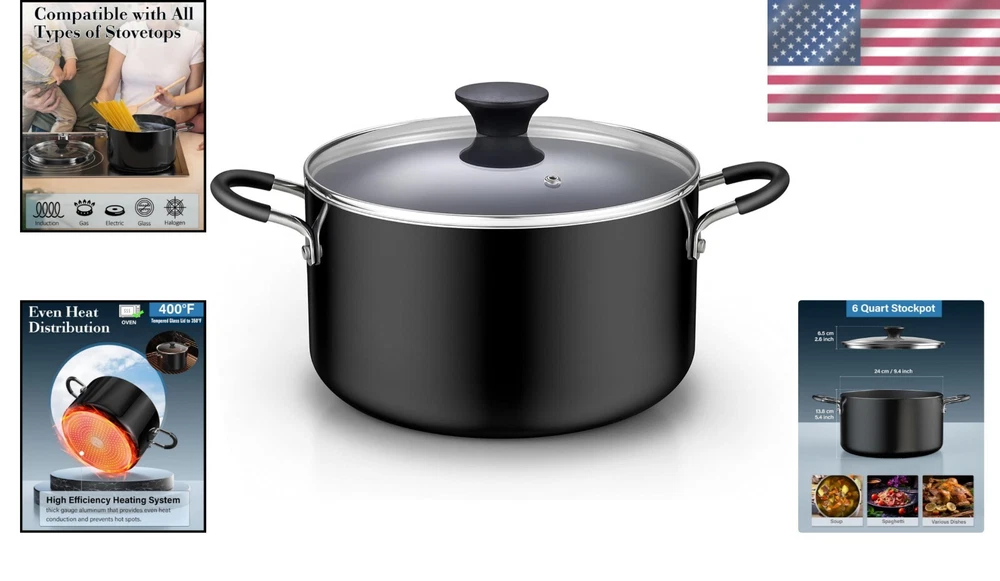 6 Quart Professional Nonstick Stockpot with Ventilated Glass Lid - Oven Safe ‹ › ‹ › ‹ › ‹ › ‹ › ‹ › ‹ › ‹ › ‹ › 6 Quart Professional Nonstick Stockpot with Ventilated Glass Lid -Oven Safe for versatile cooking Features: Made of thick gauge aluminum for perfect heat distribution. Nonstick black interior ensures effortless food release and easy cleanup. Stay-cool handles are riveted for added strength and durability. Tempered glass lid features a handy steam vent for easy monitoring while cooking. Induction compatible and works on all stovetops: gas, electric, glass, halogen, etc. Oven safe up to 400°F, making it suitable for a variety of cooking techniques. Dishwasher safe for convenient cleaning. Benefits: Enjoy perfect heat distribution for consistently delicious meals without hot spots. Experience the ease of a nonstick surface, allowing for quick release and effortless cleaning. Cook with confidence using stay-cool handles that enhance safety during meal preparation. View your culinary creations as they cook through the see-through tempered glass lid. Versatile design that is suitable for all stovetop types and is oven-safe for added cooking possibilities. Why choose our 6 Quart Nonstick Stockpot? Upgrade your kitchen with our 6 Quart Professional Nonstick Stockpot, thoughtfully designed for the culinary enthusiast. Crafted from thick gauge aluminum, it offers perfect heat distribution, ensuring your dishes are cooked to perfection every time. The nonstick interior allows for effortless food release, making cleanup a breeze, while the stay-cool handles provide comfort and safety while cooking. Featuring a tempered glass lid with a steam vent, you can easily check on your cooking without losing heat. Compatible with all stovetops and oven safe, this stockpot is the epitome of versatility and elegance. Make your culinary adventures hassle-free and enjoyable—elevate your cooking game with this must-have kitchen essential today! Shipping Free & Fast Shipping - We offer free shipping to most of the USA with a normal delivery time of 3-7 days. However, due to the current situation, additional delivery time (up to 3 weeks) may be required for some items. Alternative Carriers - We may use alternative carriers (e.g. USPS, FedEx, UPS, etc.) to ensure your package arrives safely and on time. Due to the use of multiple carriers, we are unable to provide a tracking number automatically. Handling Time - Orders are processed and shipped within 1-2 business days of receiving cleared payment. Shipping Restrictions - Shipping to Alaska, Hawaii, Puerto Rico, Guam, and other US territories may incur shipping charges or delivery restrictions. Please contact us before ordering, or your order can be refunded/cancelled. State Restrictions - There may be restrictions based on your state of purchase. For example, certain items may not be shipped to California due to state regulations. Contact for Tracking Updates - If you require tracking updates or have any concerns about the delivery of your order, please feel free to contact us, and we will be happy to assist you. Return 30-Day Hassle-Free Returns - We want you to be completely satisfied with your purchase. If you are not, you can return the item within 30 days of receiving it for a full refund or exchange. Easy Return Process - To start a return, simply contact us and we will provide you with a prepaid return shipping label and detailed instructions. Restocking Fee - There are no restocking fees for returns. However, the buyer is responsible for return shipping costs if the return is not due to a seller's error. Refund Processing Time - Refunds will be processed within 5 business days of receiving the returned item in its original condition. Payment We accept all major credit cards, PayPal, and Apple Pay for your convenience. Your payment information is secure and encrypted to ensure a safe and seamless transaction. Please complete your payment within 3 days of purchase to avoid any delays in shipping. Feedback Your feedback is extremely important to us. We strive to provide the best products and customer service possible. If you are satisfied with your purchase, please take a moment to leave us a positive review. If you have any concerns or issues with your order, please contact us before leaving negative feedback. We are committed to resolving any problems and ensuring your satisfaction. Contact Us If you have any questions or concerns, please feel free to reach out to our customer support team. You can contact us through the eBay messaging system. We are available Monday to Friday, 9:00 am to 5:00 pm EST, and we will do our best to respond to your inquiry within 24 hours. Buy it now and enjoy a pleasant shopping experience! UPC: Not Set Unit Quantity: 4.6 lb Stove Type Compatibility: Electric,Gas,Induction,Glass,Halogen Material: Aluminum,Tempered Glass Set Includes: Lid,Glass Lid Features: Dishwasher Safe,Non-Stick,Oven-Safe,With Lid,See-Through Lid,Stay-Cool Handles Type of Oven: Electric,Gas,Induction,Microwave Oven Brand: Unbranded Surface Coating: Non-Stick Capacity: 6 qt Type: Stockpot Color: Black Item Width: Not Set Item Length: Not Set Item Diameter: 14.4 in MPN: Not Set Country/Region of Manufacture: Not Set Shape: Round Manufacturer Warranty: Not Set Item Height: Not Set Item Depth: 9.7 in Model: Not Set Number of Items in Set: Two-Piece Heat Resistance: 400°F Item Weight: 4.6 lb Unit Type: lb