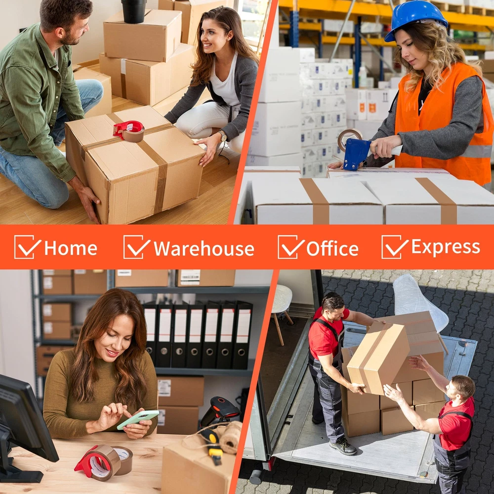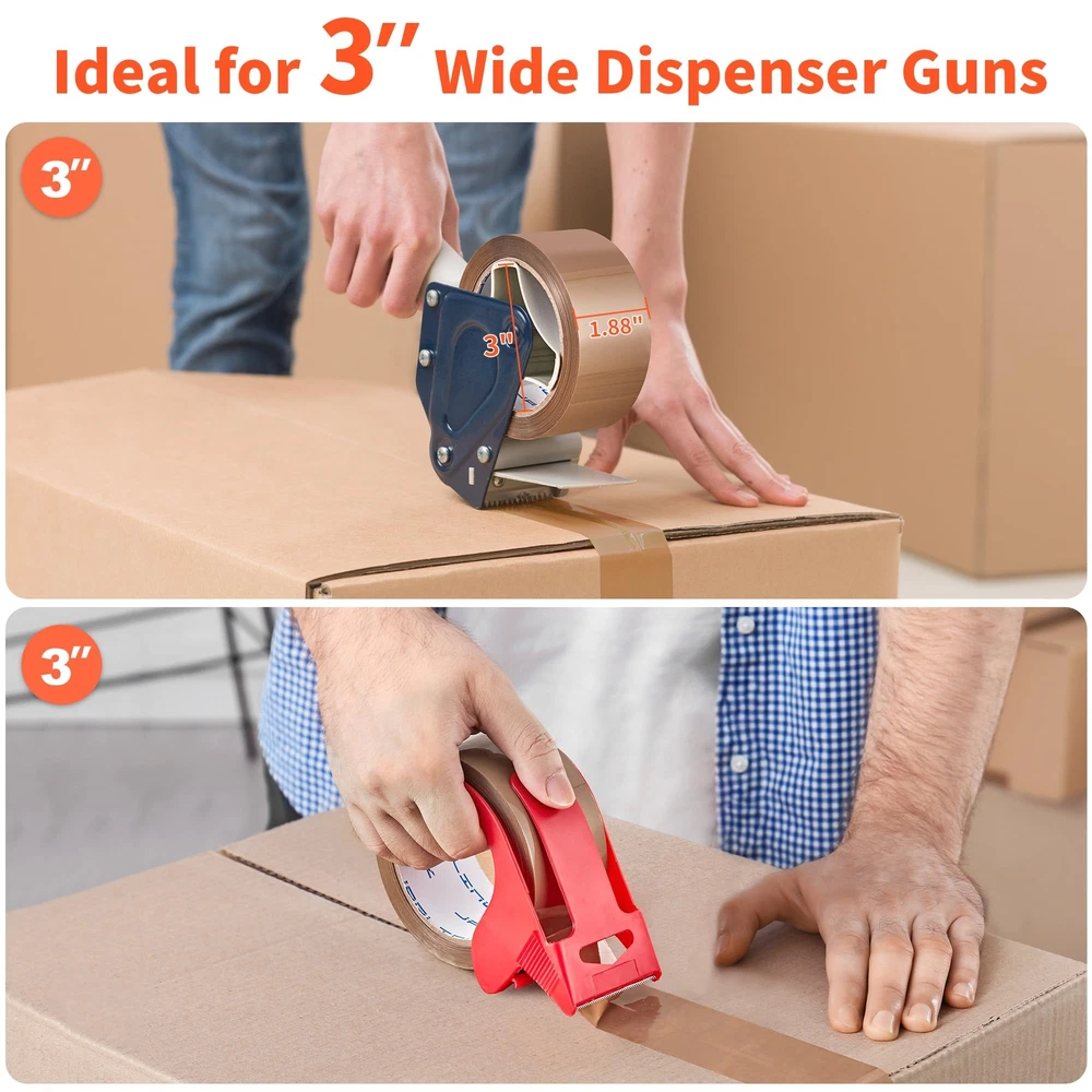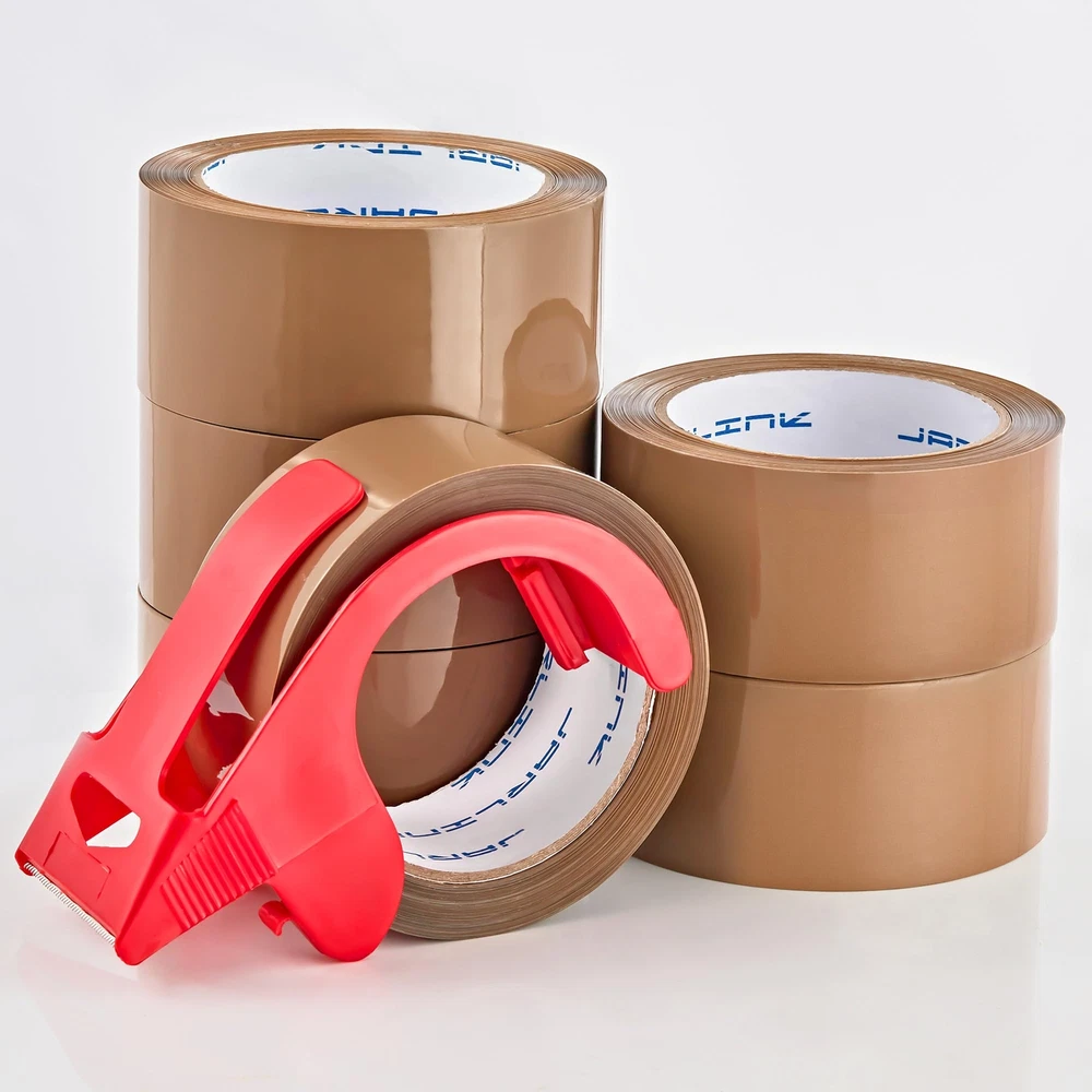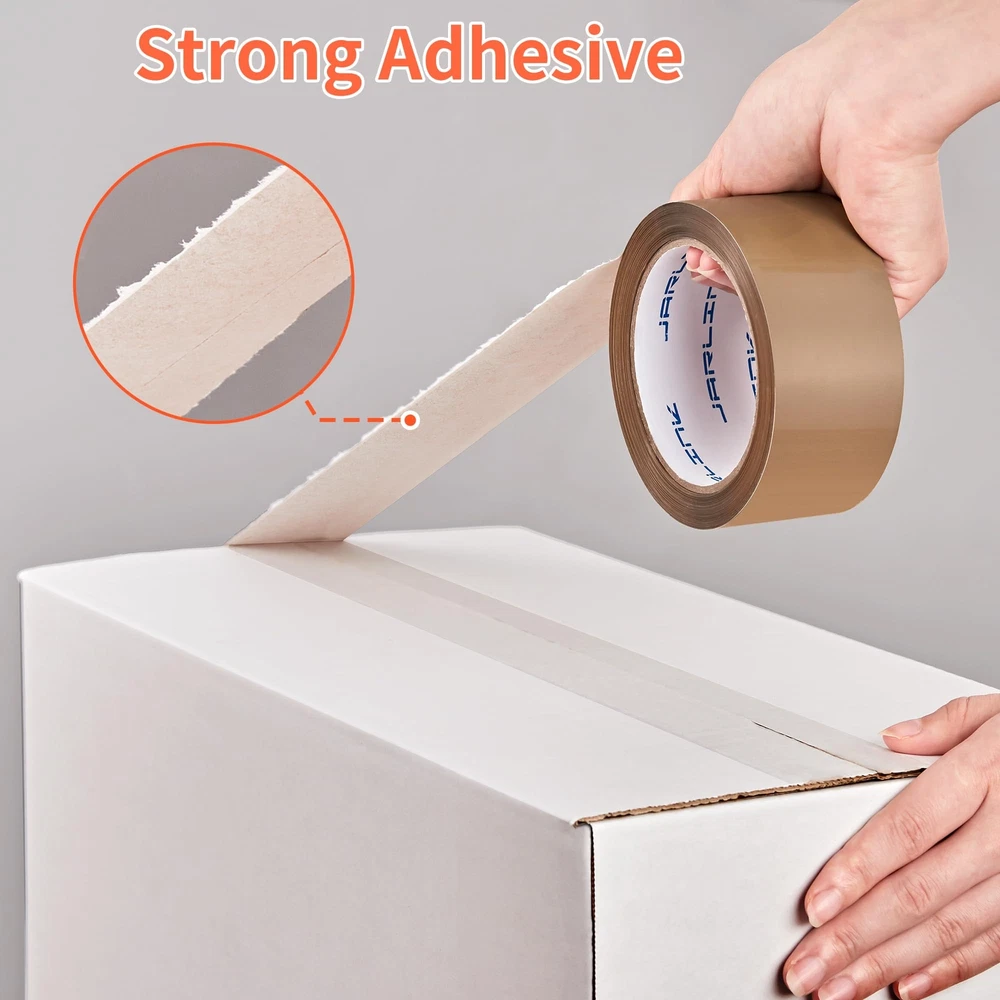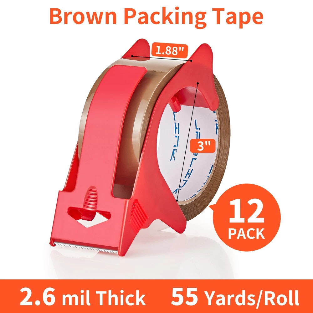 Value Pack: This set includes 6 rolls of brown packing tape and a dispenser, each roll offering 55 yards of tape that is 1.88 inches wide. With a total of 330 yards (990 feet), it's a cost-effective solution for all your packing and sealing projects. High-Quality Adhesive: Featuring a robust BOPP acrylic adhesive, this packaging tape creates a strong and lasting bond. It maintains its adhesive performance under a variety of conditions, ensuring long-term reliability and stickiness. Superior Durability: At 2.6 mils in thickness, this shipping tape provides excellent toughness and durability. It's highly resistant to tears and splits, making it the ideal choice for general industrial packing and boxes that weigh up to 50 pounds. Easy to Use: Designed for use with standard handheld dispensers with a core diameter of 3 inches and a width of 2 inches. The heavy-duty tape is simple to tear and peel, allowing for quick and efficient application without the need for additional tools. Versatile Applications: Perfect for more than just warehouse use, this moving tape is also great for household, industrial, and office settings. It's suitable for sealing, packing, repairing, labeling, and decorating, ensuring the safety and integrity of items during transit.