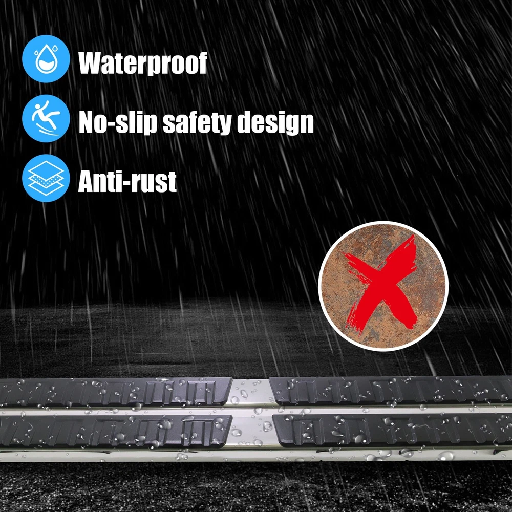 Fitment: 1999-2016 Ford F-250 Super Duty 1999-2016 Ford F-350 Super Duty 1999-2016 Ford F-450 Super Duty 1999-2016 Ford F-550 Super Duty Package Include: 2x Running Boards (left&right) 1x Set Mounting Brackets and hardware 1x Installation instruction Features & Benefits : 1. High Strength Mounting Bracket: The Running Board features a high-strength mounting bracket that can hold up to 450 lbs, ensuring durability and stability during use. 2. Durable and Rust-Resistant: Constructed from durable, rust-resistant stainless steel and ABS, this Running Board is designed to withstand the test of time and harsh weather conditions. 3. Easy Installation: The Running Board boasts an easy bolt-on installation design, with most models requiring no cutting or drilling. An accurate screw hole ensures a hassle-free installation process. 4. Slip-Resistant: The Running Board is equipped with large slip-resistant step pads, providing a safe and secure stepping surface to prevent slips and falls. 5. Professional Installation Recommended: While the installation process is straightforward, professional installation is highly recommended to ensure the Running Board is correctly and securely fitted.
