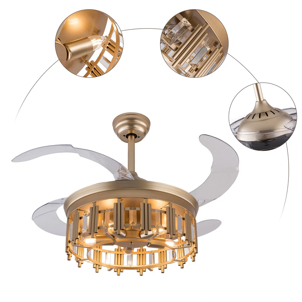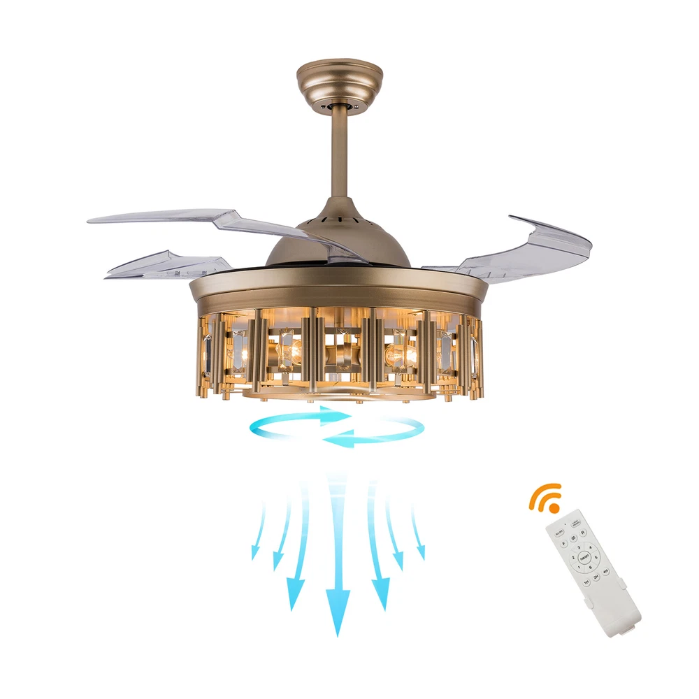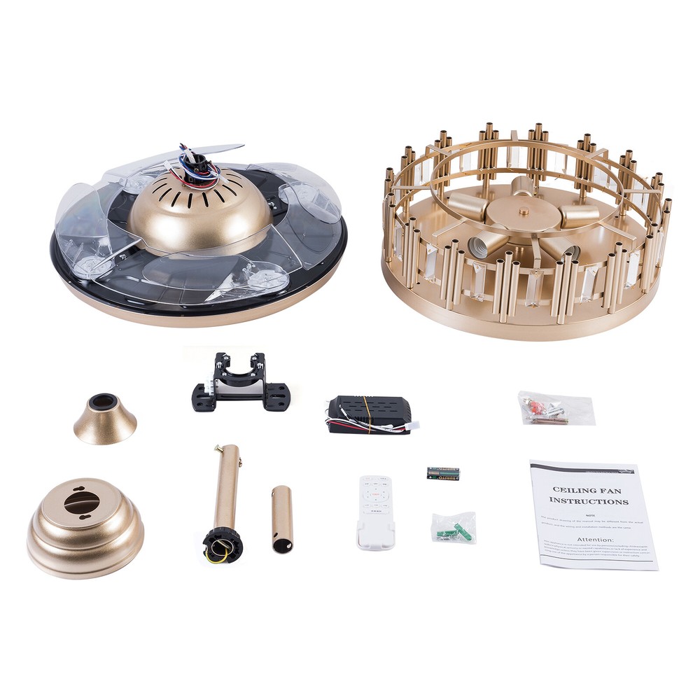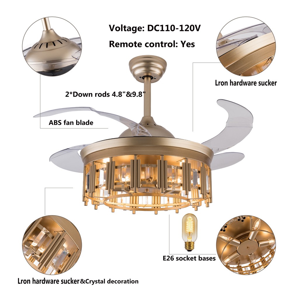 Control Style:Remote Controlgtin13:Does not applyStyle:ModernPower Source:/Voltage:DC110VLighting Technology:E26Energy Star:AMaterial:Iron, ABSLED String/Strip Type:WS2812Electric Fan Design:Ceiling FanControl Mode:Remote Control ( Available to Control Light, Fan, and Timer)* Feature *:Creative Design,Durable Material,Beautiful AppearanceUPC:Does not applyCord Color:/Room:BedroomBlade Color:/Sensor Type:/EC Range:A+ - FFeature 1:Compact Design,Unique AppearanceNumber of Blades:4Total Diamter (With Fan Blade Open):107cm/42inManufacturer:/Mounting Type:Downrod MountFeatures ::It Is Easy To Install,reliable qualityHighlights:Sturdy and Durable,Long Service LifeMPN:N/ATiming Range:1h, 2h, 4hTransportation does not include:canariasFeatures:★★★Nice and Practical, High Quality Packaging★★★Process:Baking PaintColor:GoldLight Source:E26*5 ( Not Included )Fan Width:/Total Height:45cm/17.71in, 58cm/22.83inInstallation Area:IndoorType:Ceiling FanNumber of Speeds:6Motor Power:45WBrand:Unbranded