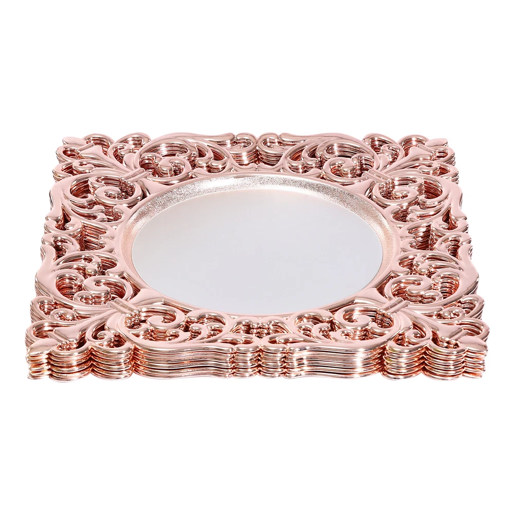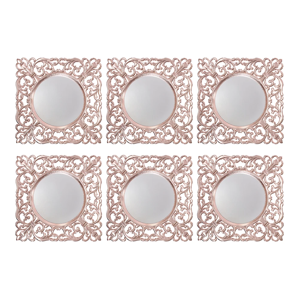 Specifications Material: PP, Acrylic Process: Electroplating Style: Antique Color: Rosy Gold Mount Type: Tabletop Shape: Square Assembly Required: No Is Dishwasher/Oven/Freezer Safe: No Product Care Instructions: Hand Wash Only Number of Pieces: 6 Gross Weight: 1.8kg/3.97lbs Net Weight: 1.5kg/3.31lbs Each Mirror Diameter: 18cm/7.09in Each Product Size: 30*30*2cm/11.81*11.81*0.79in Package Size: 33.5*33.5*5cm/13.19*13.19*1.97in *WELCOME TO basedaak222 - Your Trusted Destination!* Description With their ornate embossed edges, these dinner plates are both sophisticated and stylish, ideal for showing off your taste and elegance. Made from high-quality PP and acrylic, they are sturdy, durable and easy to clean. They can organize food scraps, prevent soup spills, prevent stains on the table, and protect the table by isolating food heat, making it a pleasant dining experience for you and your guests. Whether it's a family dinner, a dinner party or a business occasion, it will make your tableware more colorful. Key Features High-quality Material: It is made of high-quality PP and acrylic with an electroplating process, which is healthy, sturdy, and durable, making our product hard to break and can be used for a long time. Banquet Assistant: It provides you with a clear mirror reflection for a gorgeous ambiance that can easily elevate any table decor or reception, and the rosy gold accents add a touch of elegance to the dinner plate. Powerful Function : It not only fits under salad plates, soup bowls and entree plates (not included), it also prevents accidental spillage of soup and stains the table, protects the table from heat and scratches, and keeps the table looking beautiful. Stylish Appearance: The high-quality embossed edges enhance the presentation of your food and make it more attractive. It can be matched with other tableware sets to decorate your banquet and make your table more attractive. Set of 6: The package includes 6 pieces of plates, which is enough for small or middle parties or dining events. You can also order more to fulfill a larger need. Ready to Use: They are assembly-free and are capable of being used at your dinner table once you receive them. Effortless Cleaning: The simple structure and smooth surface allow you to simply wipe the product with a wet cloth(not included) or clean it with water. Easy to Store: 11.81*11.81*0.79in ch compact size and stackable design allow you to easily store it without taking up too much space. Ideal Gift: Its beautiful outlook and sturdy base make it a nice gift for your friends, families or colleagues. Details Round Edges: The rounded edge design is not only aesthetically pleasing, but also enhances safety in use. Flat Base: It allows for stable placement and prevents tipping. Application It is suitable for banquets, weddings, bridal showers, birthday parties, baby showers, holiday parties, waterfront events, and eye-catching, enhanced food displays. Specifications Material: PP, Acrylic Process: Electroplating Style: Antique Color: Rosy Gold Mount Type: Tabletop Shape: Square Assembly Required: No Is Dishwasher/Oven/Freezer Safe: No Product Care Instructions: Hand Wash Only Number of Pieces: 6 Gross Weight: 1.8kg/3.97lbs Net Weight: 1.5kg/3.31lbs Each Mirror Diameter: 18cm/7.09in Each Product Size: 30*30*2cm/11.81*11.81*0.79in Package Size: 33.5*33.5*5cm/13.19*13.19*1.97in Package Included 6*Dinner Plates Notes Please check the size carefully before ordering. It is not recommended that the product comes into direct contact with food. Please do not clean them with a dish-washing machine, steel wool, electric-heating disinfection tableware cabinet or put them into the microwave. Please use a soft cloth to clean and dry. Please allow the slight color difference caused by the shooting light and 1-3cm error due to manual measurement, and make sure you do not mind before you order. Welcome to autumnzhang002 ~ ?? If you have any question , please contact us , and we will reply you as soon as possible. Payment Delivery details Terms of sales About us Contact us Payment We accept ebay payment 。 Fees such as import duties, taxes are not included in the item price or shipping costs. These charges are the buyer's responsibility. Delivery details Shipping: 2-9 working days to: USA Terms of sales We maintain high standards of excellence and strive for hundred percent customer satisfaction. Feedback is very important to us. We hope that you contact us immediately before you give neutral or negative feedback, so that we can address your concerns. It is impossible to address issues if we do not know about them! About us Your satis faction is our ultimate goal. We work hard to earn your trust and future business. Our certified technicians have tested each item before shipping. The unit comes with 1 year limited warranty on all manufacturing defects. a) If you receive a defective item, you may return it or ask for a discount. Please contact us within 14 days after you receive the package. b) What you returned must be intact and in its original packaging as re? u. Customer is responsible for shipping costs of the returned item. c) We will cover the cost of shipping back t with the shipping rate indicated in the registration page. We will send you a new unit or refund the full payment you paid. Thank you. Contact us Business Hour Business Hour: Monday To Friday: 8:30 AM to 5:00 PM (Beijing China time) Due to time zones, our reply to your questions may not be immediately. But within above working time, we will reply your email within 24 hours. If it's non-workdays, please kindly be patient and wait till Monday. Please contact us with ebay message. Please feel free to contact us if you have any questions. Monday To Friday: 8:30 AM to 5:00 PM (Beijing China time) Due to time zones, our reply to your questions may not be immediately. But within above working time, we will reply your email within 24 hours. If it's non-workdays, please kindly be patient and wait