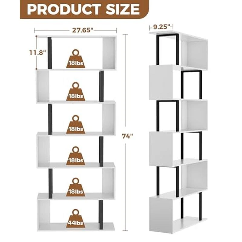 You may also like Etagere Floor Lamp W/ Shelves Storage Accent Lighting Energy Saving Solution New 46.55 USD 49.0 USD Free shipping 5% off Rustic Six Light Chandelier Vintage Industrial Style Adjustable Indoor Fixture 111.72 USD 117.6 USD Free shipping 5% off Storage Ottoman Rectangular Foot Stool Vanity Seat Wood Legs Living Room Bedroom 74.79 USD 78.73 USD Free shipping 5% off Handmade Pirate Treasure Chest Vintage Wooden Storage Trunk Lock Keys Decor Box 59.83 USD 62.98 USD Free shipping 5% off 2 Door Storage Cabinet W/ Shelves Magnetic Latches Office Bathroom Organization 70.05 USD 73.74 USD Free shipping 5% off Vintage Floral Area Rug Washable Non-Slip Indoor Carpet Soft Low Pile Durable US 61.79 USD 65.04 USD Free shipping 5% off 3 Piece Antique Glass Apothecary Jars Kitchen Bathroom Storage Decorative New 52.85 USD 55.63 USD Free shipping 5% off Geometric Wooden Storage Box Set 3 Modern Decorative Keepsake Boxes Everyday New 78.35 USD 82.47 USD Free shipping 5% off Heavy Duty Roof Rack Cargo Basket Universal SUV Truck Carrier 220 Lbs Capacity 139.63 USD 146.98 USD Free shipping 5% off Bookshelf W/ Storage Cabinet 2 Shelves Open & Closed Durable Organizer Home New 46.01 USD 48.43 USD Free shipping 5% off Extra Large Handmade Woven Jute Storage Basket Natural Fiber Toys Laundry New 53.85 USD 56.68 USD Free shipping 5% off Modern Round Decorative Wood Frame Wall Mirror 22 In Art Deco Bathroom Home New 119.68 USD 125.98 USD Free shipping 5% off About this item 【5/6-tier S-shaped Bookcase】Perfect for organizing books, magazines, plants and other items in a neat and stylish manner 【Durable Construction】Made of strong and durable wood and metal frame, this bookcase is built to last 【Space-saving Design】The S-shaped design allows for maximum storage space while taking up minimal floor space. Ideal for bedrooms, living rooms, offices, and other home spaces 【Easy to Assemble】Easy-to-follow instructions ensure a quick and effortless assembly And we will provide 24 hours to solve all the issues you meet Room Type Living Room, Bedroom Number of Shelves 5-6 Special Feature Space Saving, Durable Product Dimensions 9. 25"D x 27. 56"W x 74. 02"H Style Modern Age Range (Description) All Ages See more Material Engineered Wood, Metal Mounting Type Floor Mount Shelf Type Engineered Wood & Metal Shape S-Shape Versatile Wicker Storage Trunk Collapsible Home Office Dorm Living Room Rattan 151.65 USD 159.63 USD Free shipping 5% off Collapsible Storage Bins W/ Lids Clear Window Stackable Durable Fabric 3 Set New 54.84 USD 57.73 USD Free shipping 5% off Nesting Wooden Crates Rustic Storage Farmhouse Home Organization Nested Set 3 54.76 USD 57.64 USD Free shipping 5% off 360° Rotating Jewelry Box 5 Drawers Organizer Glass Window Vertical Storage New 79.78 USD 83.98 USD Free shipping 5% off Night Stand W/ Charging Station Small Dresser 4 Drawers Multi-Use Storage Table 59.81 USD 62.96 USD Free shipping 5% off Bamboo Storage Box W/ LED Light Lockable Organizer Lifting Handle Removable Tray 59.75 USD 62.89 USD Free shipping 5% off Handwoven Rattan Storage Basket W/ Lid Square Washable Durable Stackable Brown 159.58 USD 167.98 USD Free shipping 5% off 3-Tier End Table Compact Nightstand Bedside Storage Table Plastic Poles New 27.06 USD 28.48 USD Free shipping 5% off Wooden Jewelry Box Organizer Lockable W/ Mirror Drawers Compartments Women New 109.7 USD 115.47 USD Free shipping 5% off Bookshelf W/ Storage Cabinet 2 Shelves Open & Closed Durable Organizer Home New 46.01 USD 48.43 USD Free shipping 5% off Modern Marble Decorative Storage Boxes Set 3 Keepsake Container Gold Handle New 84.65 USD 89.11 USD Free shipping 5% off Cabinet Drawer Unit Wood Kenner Home Office Reclaimed Wood Rolls Easily Durable 155.75 USD 163.95 USD Free shipping 5% off