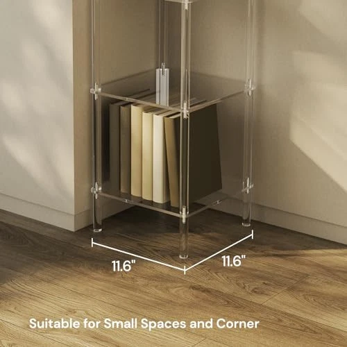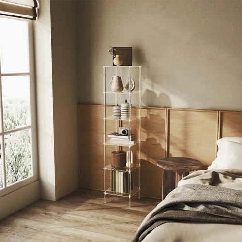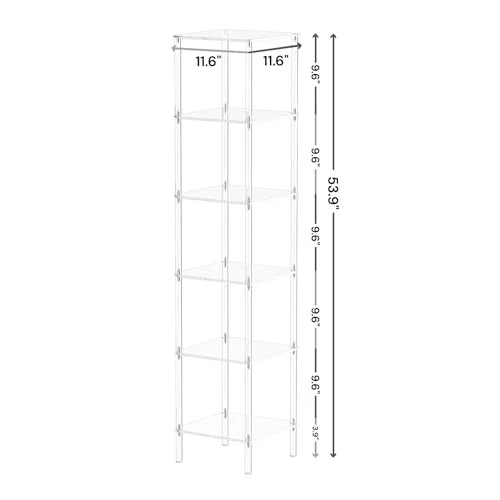 Return Policy Fast Delivery Trusted seller 6 Tier Square Acrylic Bookshelf, Small Bookcase with Acrylic Fittings for Fixing to Wall, Corner Display Shelf for Living Room, Bedroom, Bathroom, Small Spaces, Clear, 11.6'' W x 53.9'' H Product Description Premium Acrylic Material: Constructed with premium acrylic, offers a unique blend of sophistication and durability. It is strong, easy to clean, and immune to mold, ensuring long-lasting performance and reliability. Sleek and Elegant: Featuring a minimalist style with a chic transparent look, this bookshelf complements any decor. Its clean, modern appearance is perfect for showcg your books, plants, or collectibles with a touch of elegance. Space-Saving Design: 11.6"L x 11.6"W space for each level with a 9.6" spacing, perfectly designed to fit into corners, making it an ideal choice for optimizing space in any room. Easy Assembly: With all necessary hardware included and a clear set of instructions, can be easily assembled and mounted in just a few minutes. It comes with additional acrylic fixed brackets that ensure stability without compromising its aesthetics. Versatile Use: Not just a bookshelf, can also serve as a plant stand, display shelf, or storage rack. Its versatility makes it suitable for a variety of settings and purposes in your home or office. Shipping Returns Payment Shipping Shipping is FREE to all addresses other than APO/PO boxes in the lower 48 states. All our stock ships from US-based warehouses. Shipped via USPS or UPS (depending on location and package weight) Unless stated otherwise, all orders will ship within 24-72 hours of your payment being processed. Check our feedback to see the great reviews of FAST shipping we offer. Returns Seller does not accept returns Payment We currently accept payment via eBay managed payments only. Once payment is cleared, we will dispatch your shipment within 1-3 business days. Please refer to the "Shipping" tab for more information regarding shipping speed to your destination.