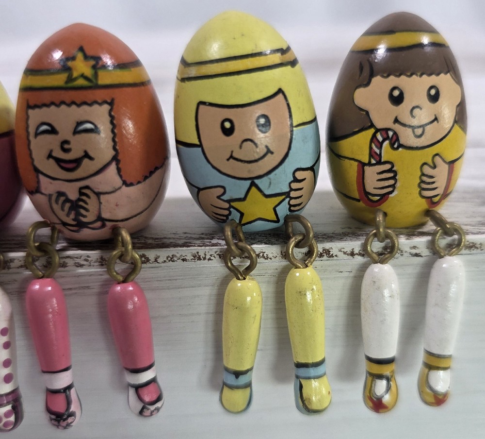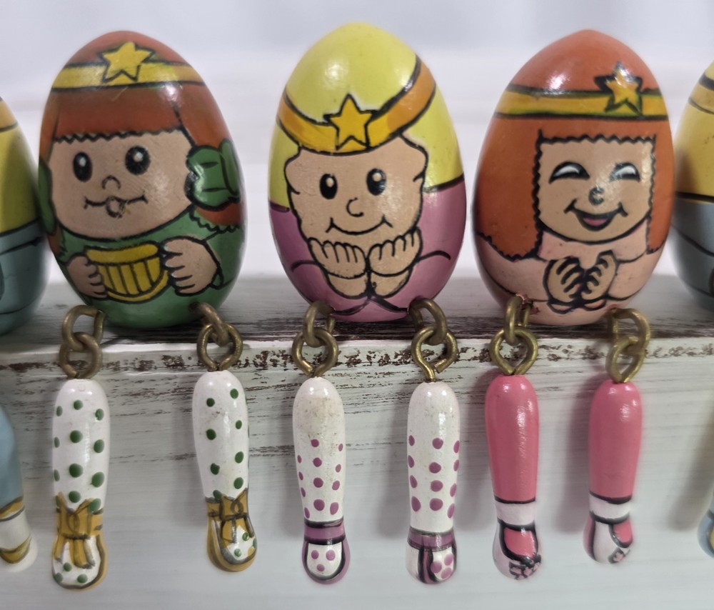 (6) Vintage Christmas Hand Crafted/Painted Wooden Egg Shelf Sitters Set. Condition is Used. Shipped with USPS Ground Advantage.