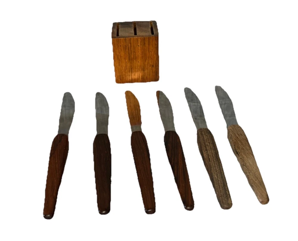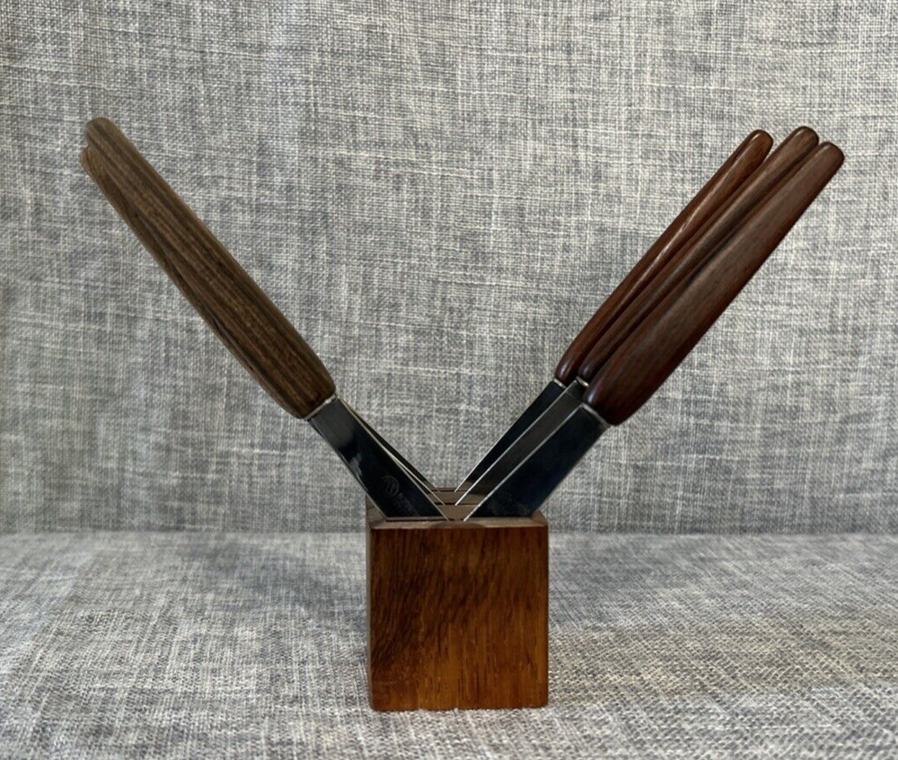 Set of 6 - Vintage - Rostfrei Solingen Germany Knives - Stainless Steel w Wood Handles & Block Pre-Owned - Please see Pictures for Details
