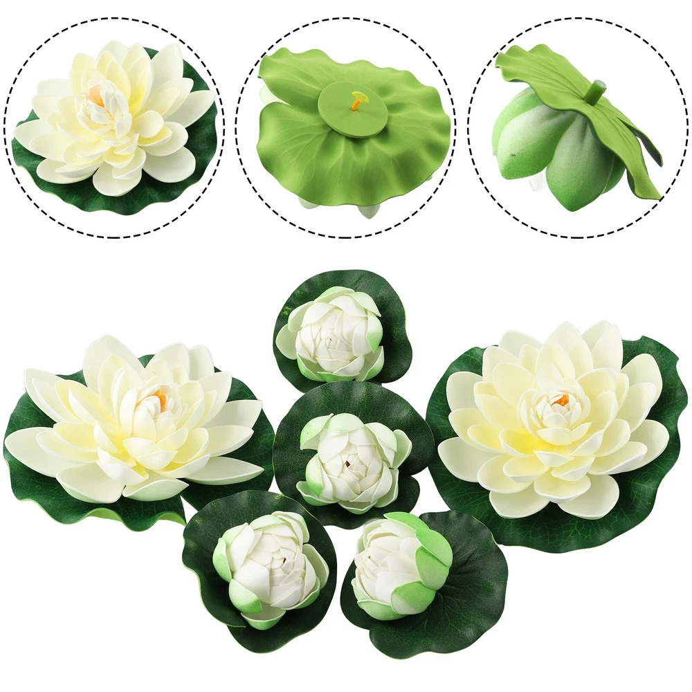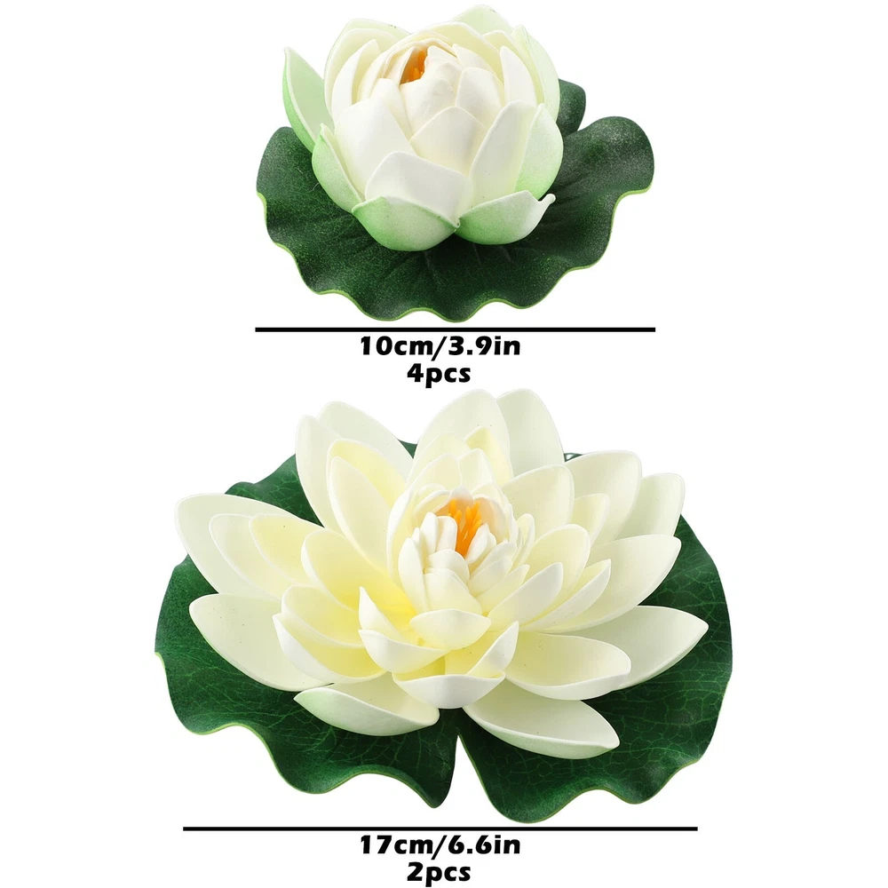 6 X Floating Plants Water Lily Artificial Lotus Flower Leaf Pond Garden/ Decor DESCRIPTION Description The water lilies is designed to float on ponds or swimming pools. Leaves are deep green with embossed shape and veining detail. Flowers are white with the underneath of the bottom layer of petals in a pale green and is a very subtle shade of pale green tint throughout the lily flower. Features: * brand new and high quality *Made of soft, flexible plastic, suitable for both outdoor and indoor usage. *Let them float freely, or use the small ring on the bottom of each float to anchor them using string (string not included). *Compared with real plants, it is more practical and convenient for use. *These floating stimulation flowers can be singly put into a pond with other water plants to create a stunning effect. Perfect for home, garden, patio decor. Specifications: *Color: White. *Material: Plastic. *2pcs Large flower diam.: About 18cm. *4pcs Small flower diam.: About 10cm. Package Contents: 6 x Artificial Plant Note: 1, The real color of the item may be slightly different from the pictures shown on website caused by many factors such as brightness of your monitor and light brightness. 2, Please allow slight manual measurement deviation for the data. POLICES Shipping Payment WARRANTY We only ship to confirmed ebay Order addresses. Please comfirm that your Order address is in line with your shipping address. Please kindly note that the c ombined shipping is not provided because the shipping fee is calculated by weight. Also, the each additional item means exactly the the same color and size. It takes about 7 -15 working days to US; about 10-30 working days to other countries. Transit time may be a little delayed because of the bad weather and customs inspection . If you do not receive your item within 30 working days since payment finished, please contact us immediately for further assistance. Payment must be completed within 5 days. If you have any problems about payment, please contact us via ebay message. We strive for 100% customer satisfaction! Positive Feedback is very important to us. If you have any questions, p lease feel free to contact us via "Ask seller a question" . We will reply your email within 24 working hours. On Jan 2, 2025 at 07:32:18 PST, seller added the following information: