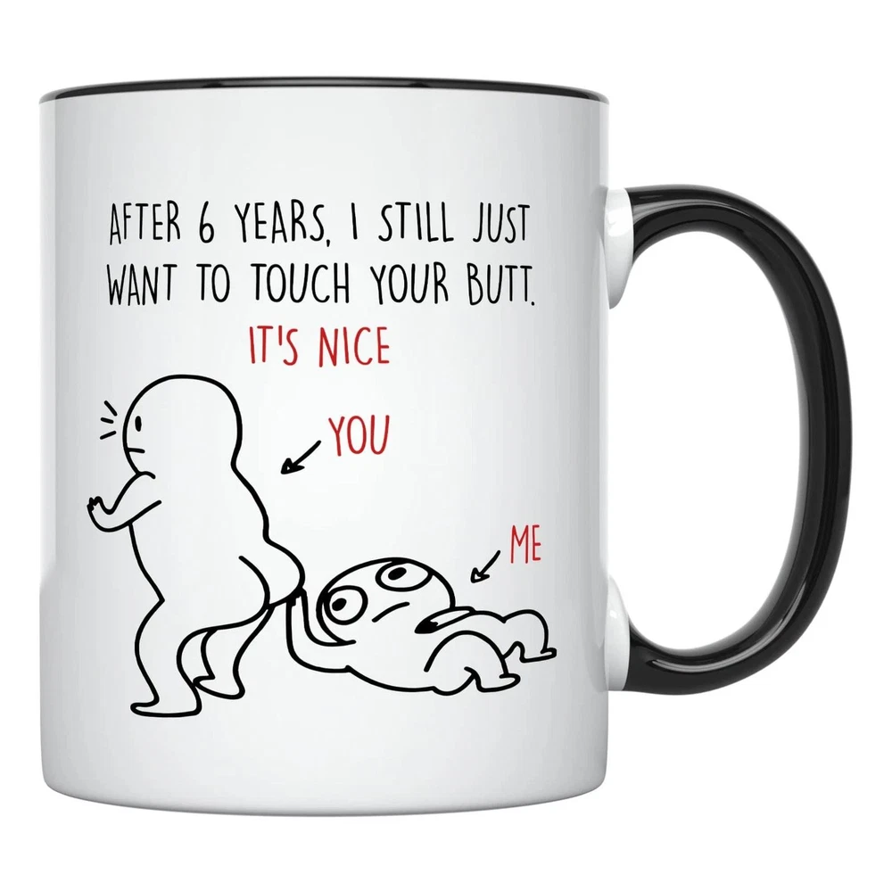 CONTACT US DIRECTLY FOR FREE & PREPAID RETURNS 6 Years Anniversary Mug, 11 Ounces, Funny 6th Anniversary Coffee Mug for Him,... ☕ [Permanent Print on Both Sides] - We use the best quality ceramics, and our images are printed with strong, vibrant, and long-lasting colors. Made using a permanent sublimation process, the print will not fade, peel or chip away so you can use your favorite hilarious coffee mugs every day. The design of this edgy coffee mug is printed on both the front and back so it is perfect for left- and right-handed people. ☑️ [Dishwasher and microwave safe] - Cleaning this coffee cup is easy - simply put it on the top rack of your dishwasher and voila - you are done! More time enjoying your favorite drinks, less time cleaning! Need a hot drink? No worries as these cool coffee mugs with sayings are microwave safe. Enjoy your hot drinks whenever you like with these white coffee mugs! 📦 [is our number one priority] – Your new 6 years anniversary coffee cup will arrive packed in a durable heavy duty box to keep it safe during shipping. If you have any questions or concerns, please us – we are just a click away! 🎁 [Unique 6 years anniversary coffee mug] - Looking for the perfect birthday gifts for husband, 6 years anniversary gifts, 6th anniversary gifts for her, or sixth anniversary gifts for her? Then these novelty coffee mugs are the perfect 6th year anniversary gifts for men or 6th wedding anniversary gifts for him! They come with a unique design - sure to fetch compliments! Share these funny coffee mugs with your wife and show them how much you appreciate them. ♥️ [From Our Family to Yours] - is a family-owned business and we put a lot of love into our products. We know how important your gift recipients are. We take pride in creating unique and thoughtful gifts for every occasion, like Valentine’s Day gifts, Mothers Day or Fathers Day gifts, graduation or birthday gifts, anniversary gifts and Christmas gifts. Our mugs are a simple and fun way to say “Happy Birthday”, “Congratulations”, or “Happy Retirement Day” for husband or wife. REVIEWS The product came very well packaged. I'm very happy. thank you for everything. Seller strongly recommended. This is great! I definitely recommend! Product looks amazing Delivery was fast. Excellent seller, great communication. I advise everyone