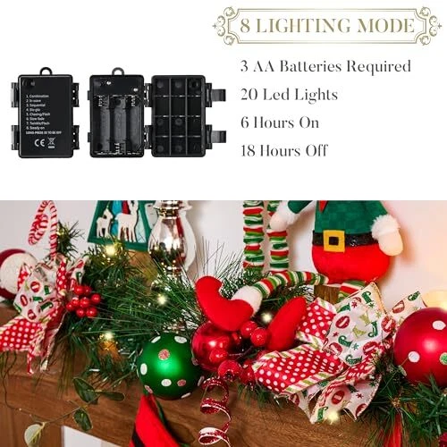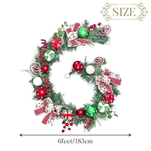Return Policy Fast Delivery Trusted seller 6 feet Pre-Lit Christmas Garland with Lights for Mantle, Lighted Battery Operated Xmas Garland with Red Green White Balls for Front Door Fireplace Table Centerpiece Outdoor Home Decor Product Description 【Original Design】 is a retail brand with original design. With a vivid theme of red, white and green, 's Christmas balls bring a joyful atmosp to your home. 【Abundant Accessories】The 6ft Christmas garland features an artificial crestwood fir branch base, adorned with rich elements such as Christmas ornaments, pine needles, berries and more. This exquisite design creates a classic scene that brings a delightful festive atmosp. To showcase it at its best, kindly remove the wreath from the box and carefully arrange and expand it 【Automatic Switch】Simply switch it to the "ON" position, and the lights will illuminate for 6 hours before automatically turning off for 18 hours. This means that it will automatically light up at the same time every day when you initially turn on the lights. It offers convenient and easy operation 【8 Lighting Effects】This garland features 20 warm yellow LED lights and a switch button with 8 options for selecting various lighting effects. It allows you to create a warm and festive atmosp for Christmas 【Versatile Use】This garland is suitable for both indoor and outdoor use. It can be hung on walls, fireplaces, windows, stairs railing or placed above the entrance or on a mantel. It can also serve as a centerpiece on a tabletop, offering a warm welcome to family and friends. Additionally, it makes a wonderful Christmas gift 【More Options】The Christmas garland pairs perfectly with our Christmas wreath, plastic ball ornaments, tree skirts, stockings, and more, allowing you to create a harmonious and visually appealing holiday look for your home 【Safe Garlands】With no sharp edges, this Xmas garland offers a worry-free way to bring the sense of comfort and warmth of Christmas into your home. Embrace the season with peace of mind and coziness. 【Christmas Vibe】This beautiful hanging garland is perfect for adding a festive touch and warmth to your home during the Christmas season. Its eye-catching design will make your decorations stand out in the neighborhood, spreading holiday cheer to all! Shipping Returns Payment Shipping Shipping is FREE to all addresses other than APO/PO boxes in the lower 48 states. All our stock ships from US-based warehouses. Shipped via USPS or UPS (depending on location and package weight) Unless stated otherwise, all orders will ship within 24-72 hours of your payment being processed. Check our feedback to see the great reviews of FAST shipping we offer. Returns Seller does not accept returns Payment We currently accept payment via eBay managed payments only. Once payment is cleared, we will dispatch your shipment within 1-3 business days. Please refer to the "Shipping" tab for more information regarding shipping speed to your destination.