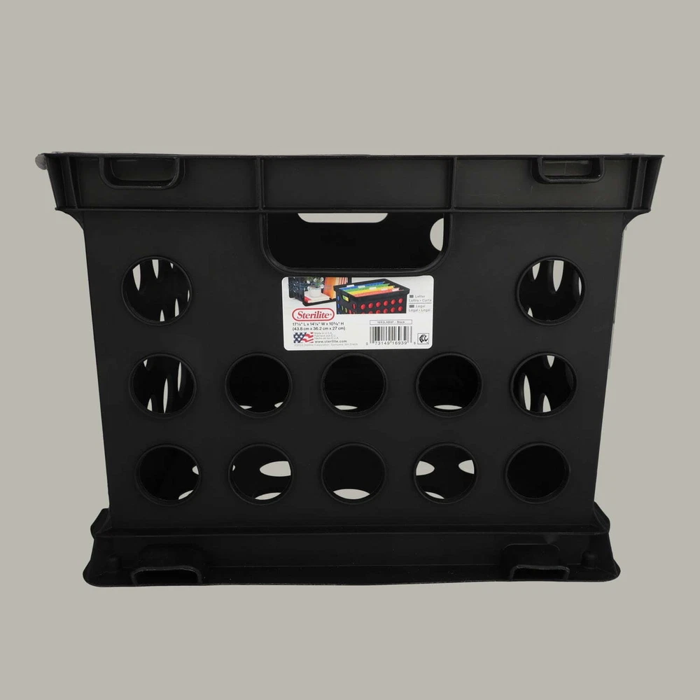 Crates provide a versatile solution ideal for office, dorm, garage or utility room storage needs. The File Crate is a multi-purpose solution that can address a variety of storage needs in the home. It is an ideal fix for keeping all of your letter-sized files neatly stored near a desk allowing for easy access in a home office, a school or dorm setting. Multiple crates can stack on top of each other to use vertical space efficiently. This File Crate can also stack on its side to create a bookcase type of storage system, ideal for a variety of household or dorm room necessities. Integrated handles allow for easy transporting, when storage is needed on the go. The overall assembled dimensions of this item are 17 1/4" L x 14 1/4" W x 10 5/8" H. Overall Assembled Size: 17 1/4" x 14 1/4" x 10 5/8" Ideal for letter-size and legal-size hanging folders or stack them to use as modular storage Single unit option Solid color with integrated handles for easy carrying - Black Versatile solution ideal for office, dorm, garage or utility room storage needs Accommodates letter-size and legal-size hanging folders for convenient document storage Integrated handles make this a portable storage solution Multiple crates can stack on top of each other to use vertical space efficiently