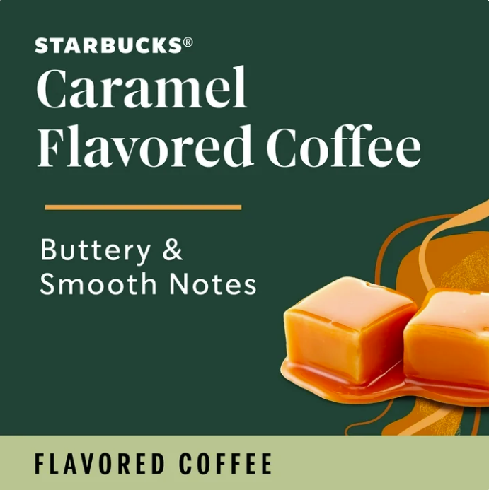 PREMIUM GROUND COFFEE: Enjoy the Starbucks coffee you love at home with six 11-ounce bags of Starbucks Caramel flavored roast ground coffee FLAVORED: Starbucks Caramel is an easy-drinking coffee, known for its light body with buttery and smooth notes—making it delicate, smooth and oh so delicious HOT OR ICED COFFEE: Enjoy your coffee your way—brew it hot or over ice for a refreshing pick-me-up. Add your favorite coffee creamer for a personalized touch, or enjoy balanced, black coffee for a satisfying sip any time of day BREW IT YOUR WAY: Enjoy the same delicious Starbucks taste, no matter how you make your cup—whether it’s a rich French press, classic drip brew or smooth pour-over CAFÉ QUALITY: Starbucks adheres to the highest quality standards—shipping you the same artfully crafted Arabica coffee beans brewed in Starbucks cafés
