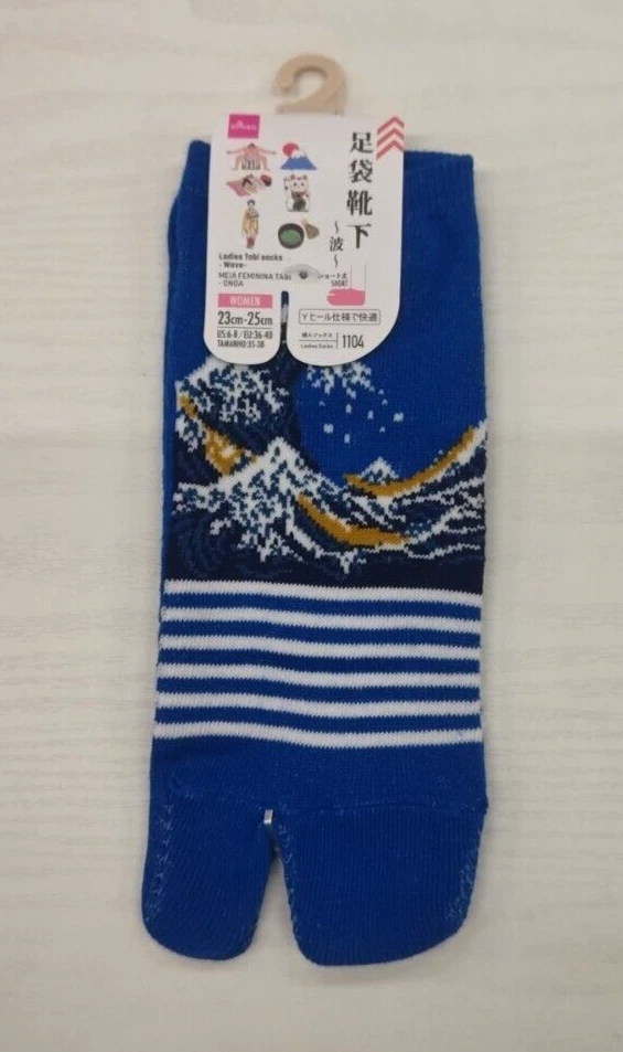 Item Title Description This is a set of 6 Japanese Tabi Socks designed for women. The socks feature various traditional Japanese designs such as Ukiyoe, Tsuru, Neko, Sushi, and Sumo. They are unused and made of polyester and polyurethane materials. The socks are designed in a Tabi style, which includes a separation between the big toe and the rest of the toes for wearing with traditional Japanese footwear. Please check the condition in the photo and purchase only if you agree with the condition. Please feel free to contact us if you have any question. Shipping Your valuable items will be shipped via Japan Post EMS and a tracking number will be provided. We will pack and ship your valuable items with the utmost care. International Buyers - Please Note: Import duties and taxes are not included in the item price or shipping cost. Please check with your country?s customs office to determine these additional costs prior to bidding or buying. Additionally, if the delivery address is in a remote area, there may be additional charges by FedEx or DHL. If such charges occur, you may be asked to pay an additional $15 to $20.